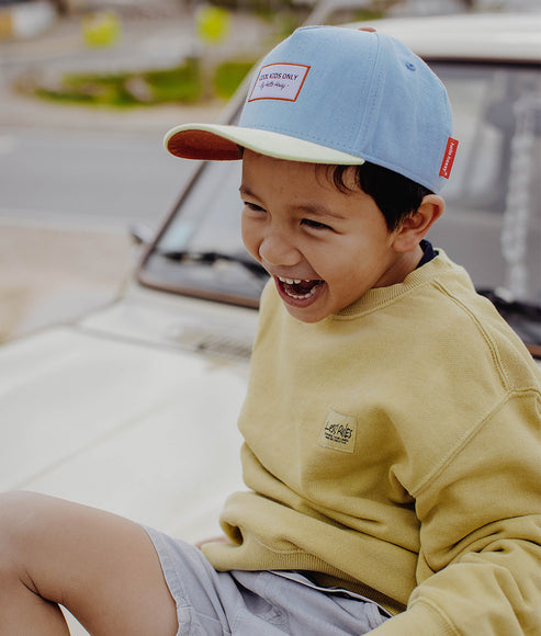 The Mini Water Cap for children and babies is part of our Cap Collection with curved brims. This cap is perfect for all kids from 9 months of age. Bright and color, it brings out the joy on your child's face . So do we! It's one of our little rascal Time's favorites.