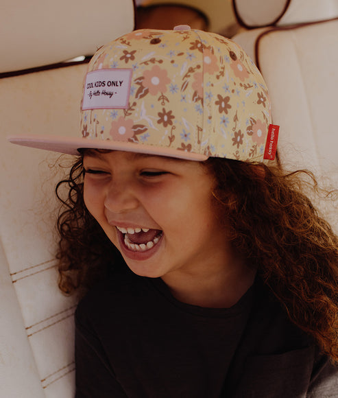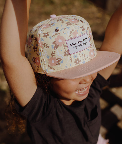 The Pastel Blossom Cap for children and babies is a flagship Hello Hossy® cap. Pattern: Flowers. This cap is available as a mother-daughter duo. Perfect for matchy-matchy looks! Eco-friendly, from 9 months of age, an excellent gift.