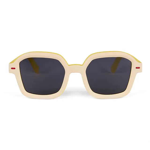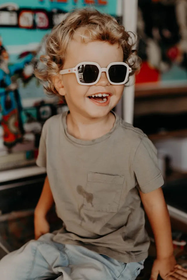 The Hossy children's sunglasses will suit all the scoundrels. The Hossy collection is a collection that we particularly like. It is carried by our Jimmy. UV400 protection, Category 3 lenses, recycled polycarbonate, spring hinges, colorful packaging, we have taken care of every detail.