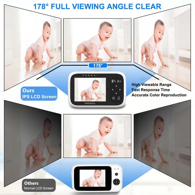 Introducing our feature-packed video baby monitor, where cutting-edge technology meets practical parenting. The 3.2-inch IPS LCD display ensures vivid visuals, paired seamlessly with enhanced 2.4GHz wireless technology. Experience secure and reliable connectivity, thanks to frequency-hopping and digital encryption.