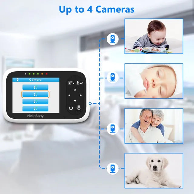 Plus, with multi-camera capability, a single parent unit can connect to up to 4 cameras, providing comprehensive coverage. Elevate your parenting experience with our video baby monitor, designed to bring peace of mind and convenience to your everyday routine.