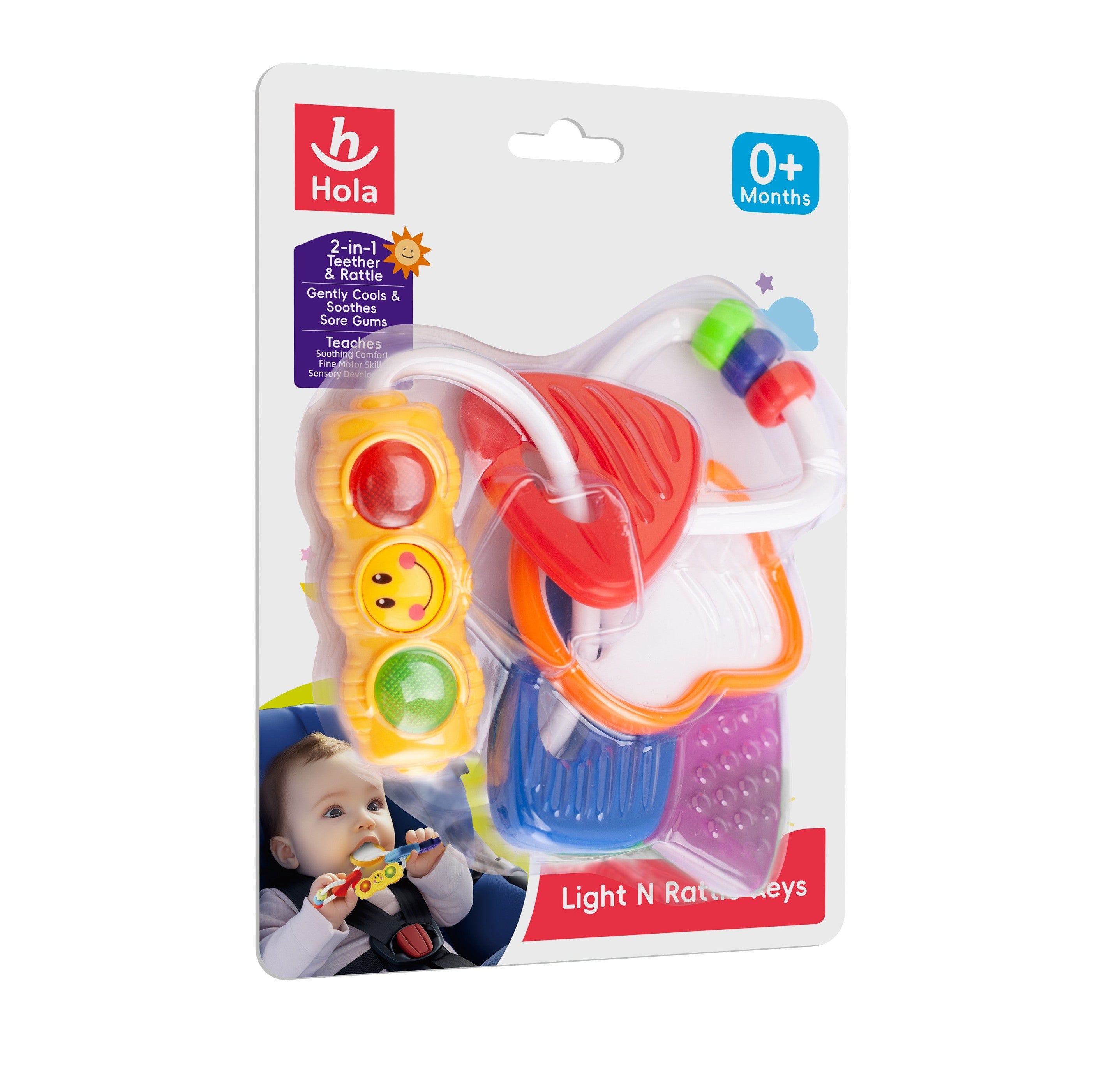 Hola 2 in1 Light & Rattle Keys Baby Teether, Sensory & Teething Relief Toy for Infants Flashing Lights for Visual Stimulation, Rattling Sound, Easy to Grasp, Fine Motor Skills, Baby Toys, BPA-Free, 0M+