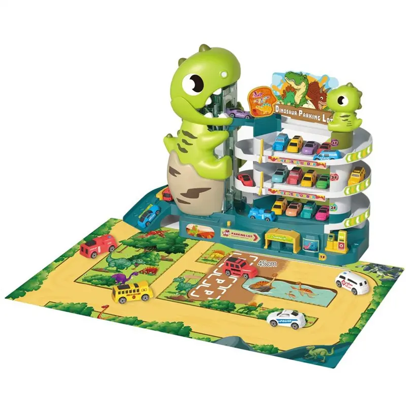 - Fun and Easy to Play: Install 2 AA batteries(not included), turn on the switch, the dinosaur's mouth can be opened and closed, the elevator rises automatically, transporting the car to the top of the parking lot. The dinosaur parking building comes with a one-meter map to help explore the world of dinosaurs. The mini car requires no batteries, with low resistance wheels + track tilt, gravity gliding, easy for your children to play.