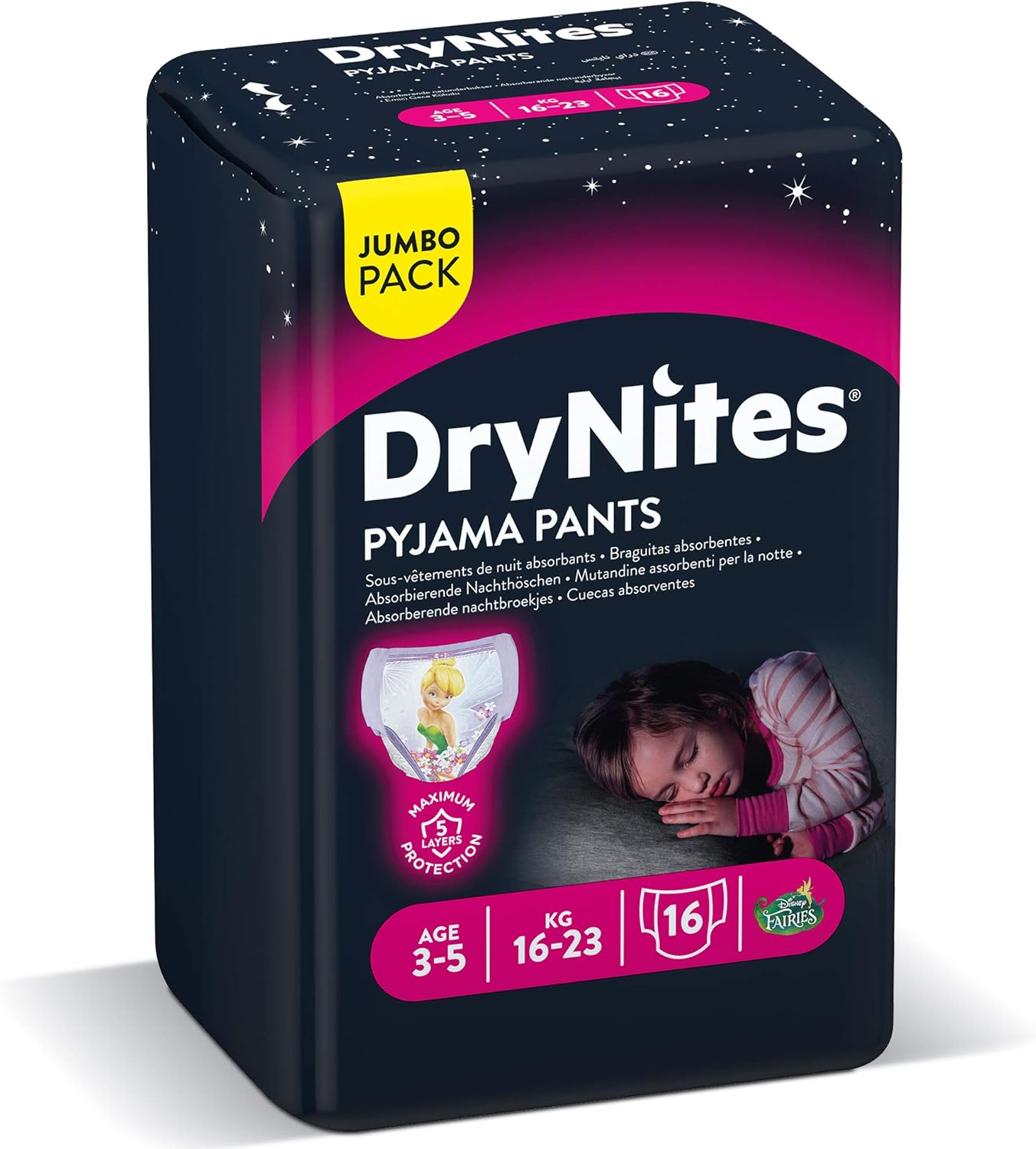 Huggies DryNites Pyjama Pants, 3-5Y, Bed Wetting Diaper, Girl, 16-23 kg, Jumbo Pack - 16pcs