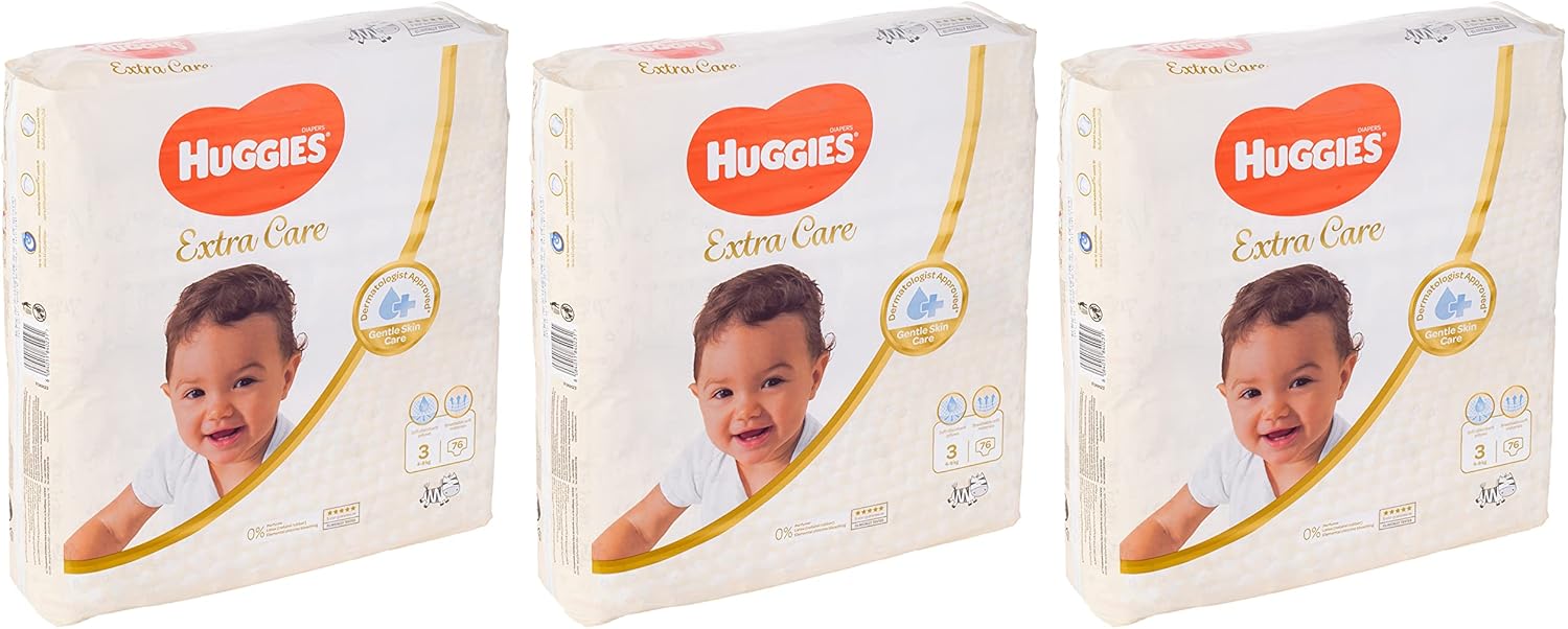 With Huggies Extra Care diapers in size 3, your little bundle of joy is dry and comfortable all day long.