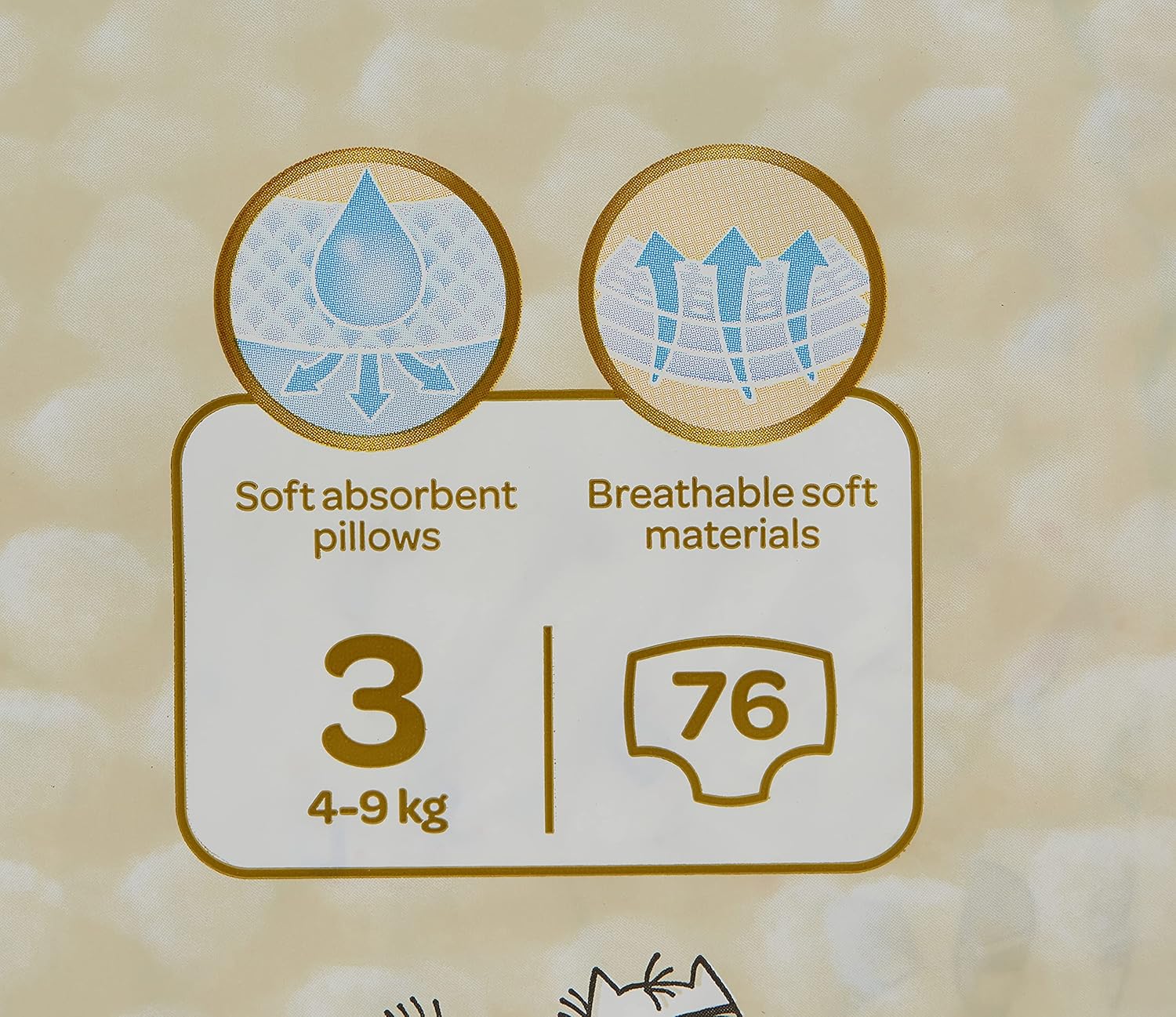 Our nappies are equipped with three absorbent channels and soft cushions that absorb wetness in seconds. Breathable, soft materials keep your baby dry and protected from skin irritation, allowing the skin to breathe and stay dry.