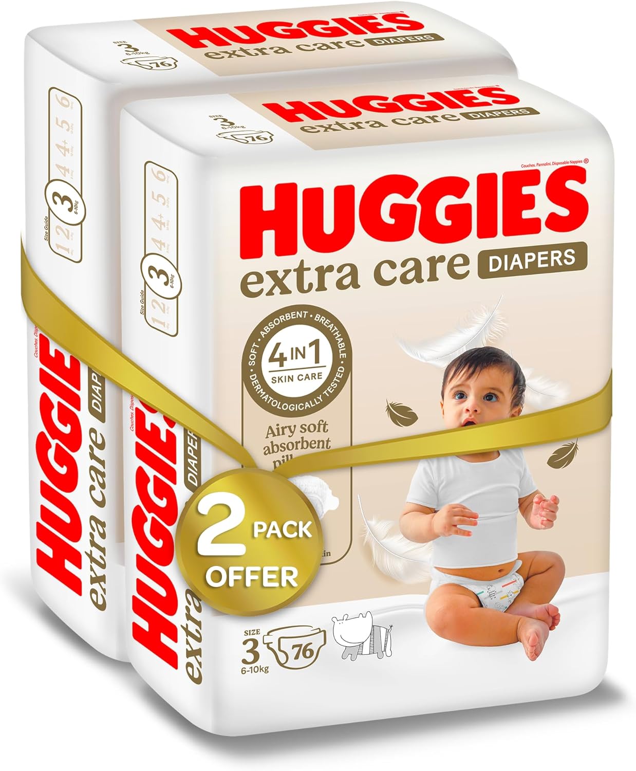 - DRYNESS AND COMFORT: Huggies Extra Care Size 3 Diapers keep your baby dry, comfortable, and protected from diaper rash all through the day