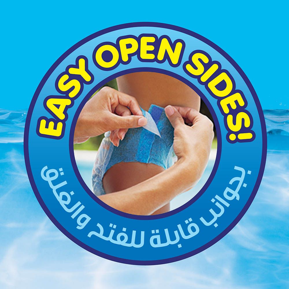 - TABBED SIDES: Huggies Little Swimmers swim pants in sizes 2-3 feature convenient tabbed sides that ensure a secure fit with a practical open and close system