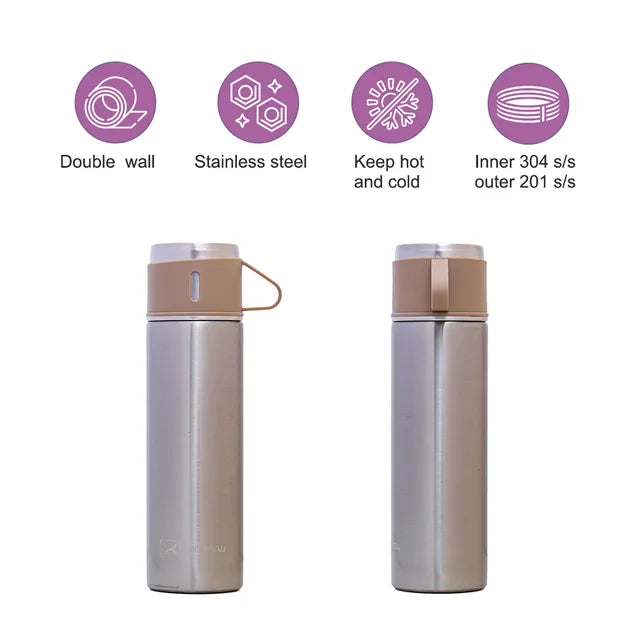 The double-wall construction creates a vacuum or a layer of air between the inner and outer walls, acting as a thermal barrier. This helps in maintaining the temperature of the liquid inside, whether it's hot or cold. Double-wall insulation provides excellent temperature retention. It keeps hot liquids hot for an extended time and cold liquids cold without condensation on the outer surface.