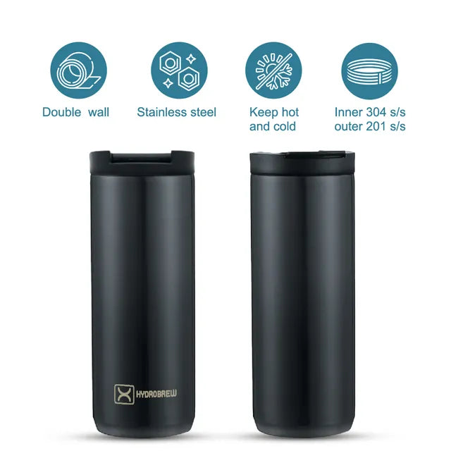 The double-wall construction creates a vacuum or a layer of air between the inner and outer walls, acting as a thermal barrier. This helps in maintaining the temperature of the liquid inside, whether it's hot or cold. Double-wall insulation provides excellent temperature retention. It keeps hot liquids hot for an extended time and cold liquids cold without condensation on the outer surface.