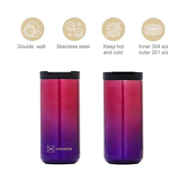 The double-wall construction creates a vacuum or a layer of air between the inner and outer walls, acting as a thermal barrier. This helps in maintaining the temperature of the liquid inside, whether it's hot or cold. Double-wall insulation provides excellent temperature retention. It keeps hot liquids hot for an extended time and cold liquids cold without condensation on the outer surface.
