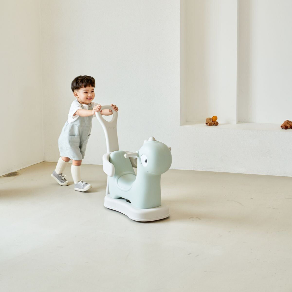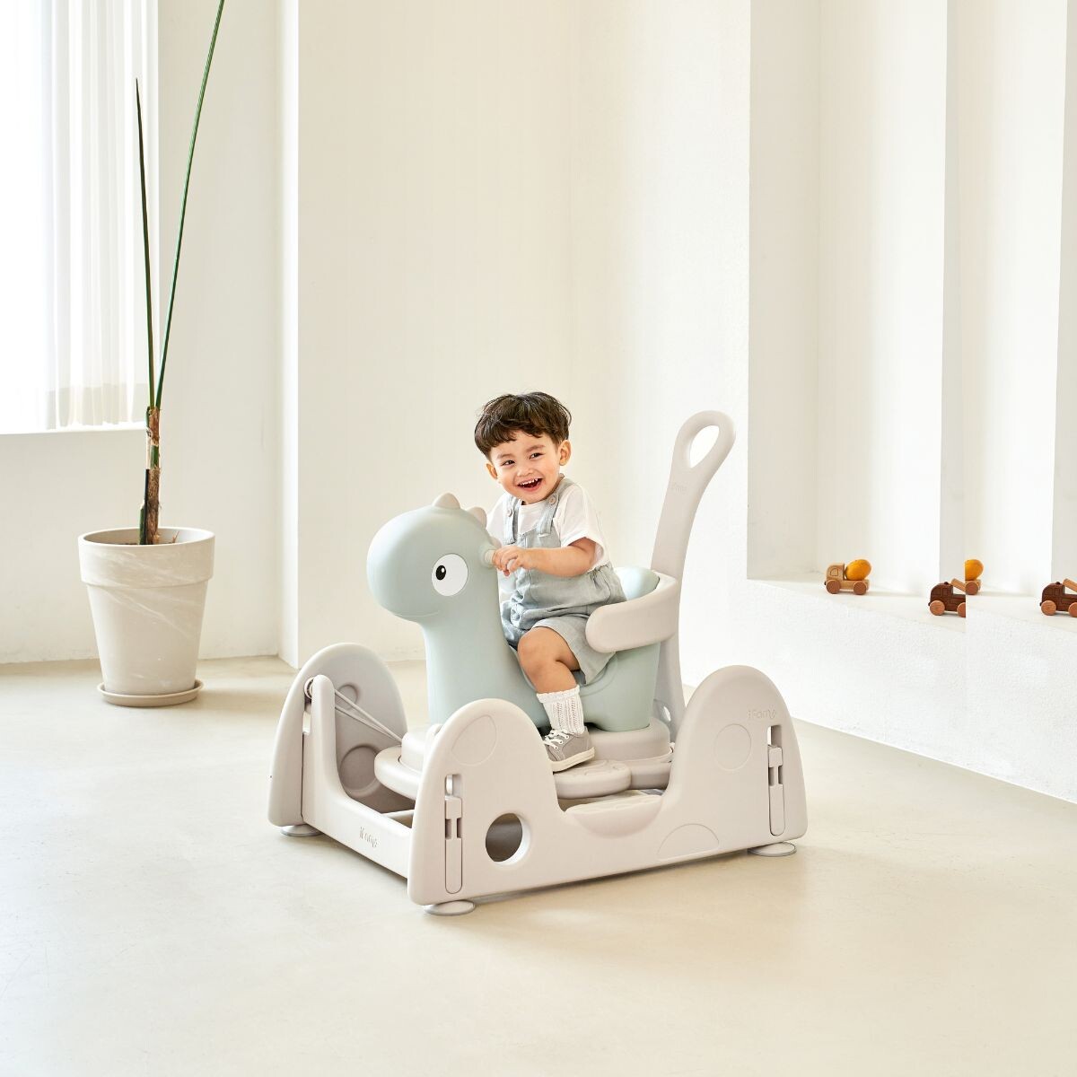 Famy Dinosaur Spring Car Set is a 3-in-1 multipurpose toy that combines a push car, toddler ride-on car, and spring bouncing car to grow with children. Toddlers are able to develop multiple physical abilities at different stages through a fun playing process without getting bored! It comes with a cute Famy Dinosaur design and soft natural colours to blend in any house interior naturally.