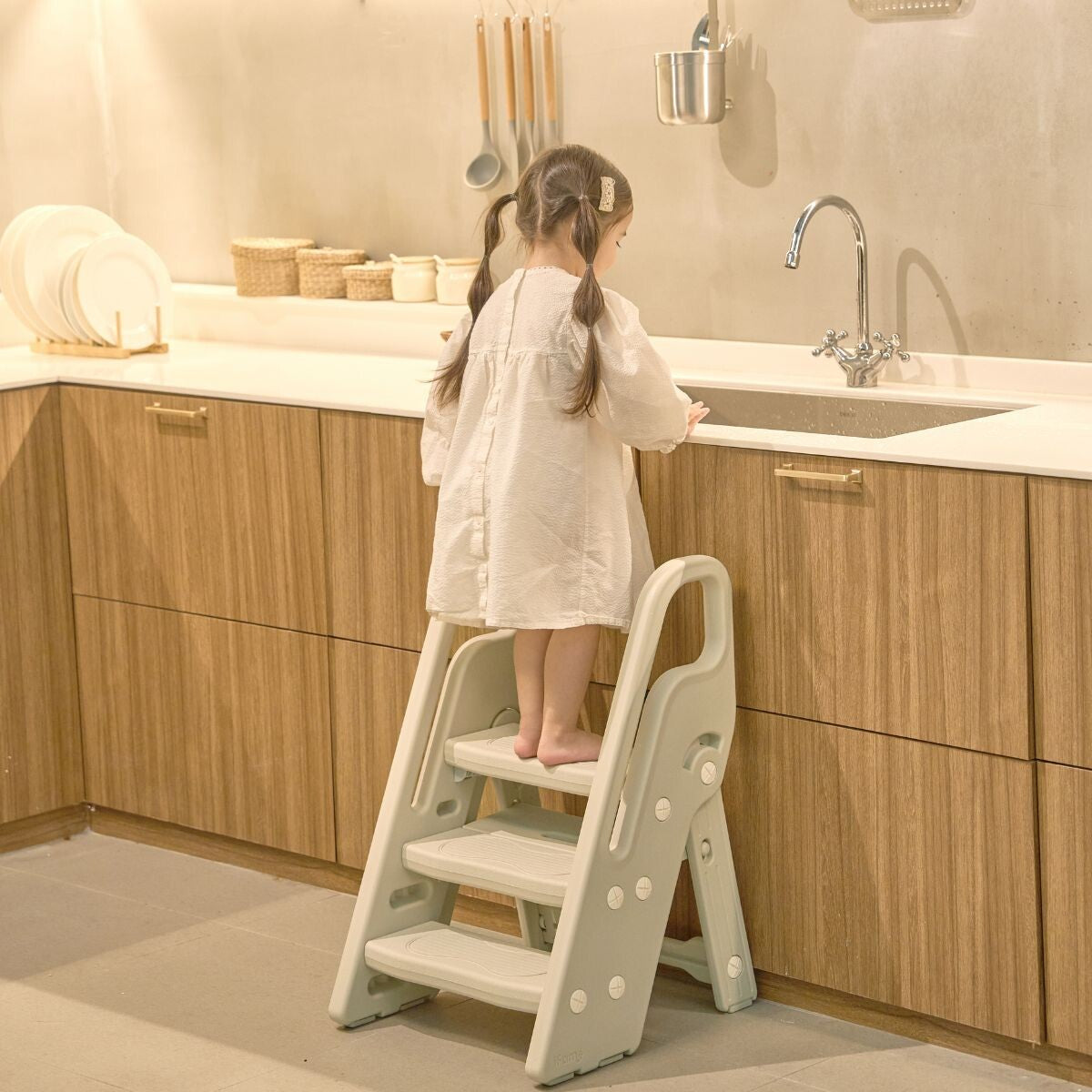 Foldable 3-Level Step Stool is a step stool designed for a long-term use. Adjustable between 3-stairs and 2-stairs, it is easily able to transform according to the child's growth. Also with it's design, the step stool can easily match with the interior decorations.