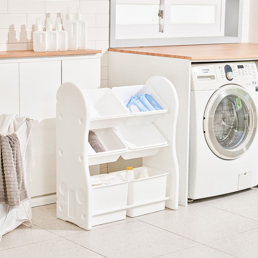 A perceptual interior design for the space organization of child's toys. Smart Compact Storage Organiser series is the upgraded version of iFam popular Design Toy Organiser. Following simple & modern design using gradient colours, compact size and lightweight this Storage Organiser is the perfect fit for anywhere in your designer home baby room, bedroom, bathroom, living room, kitchen etc. , , Encourage your child to organise their own toys & books using the available storage space for them.