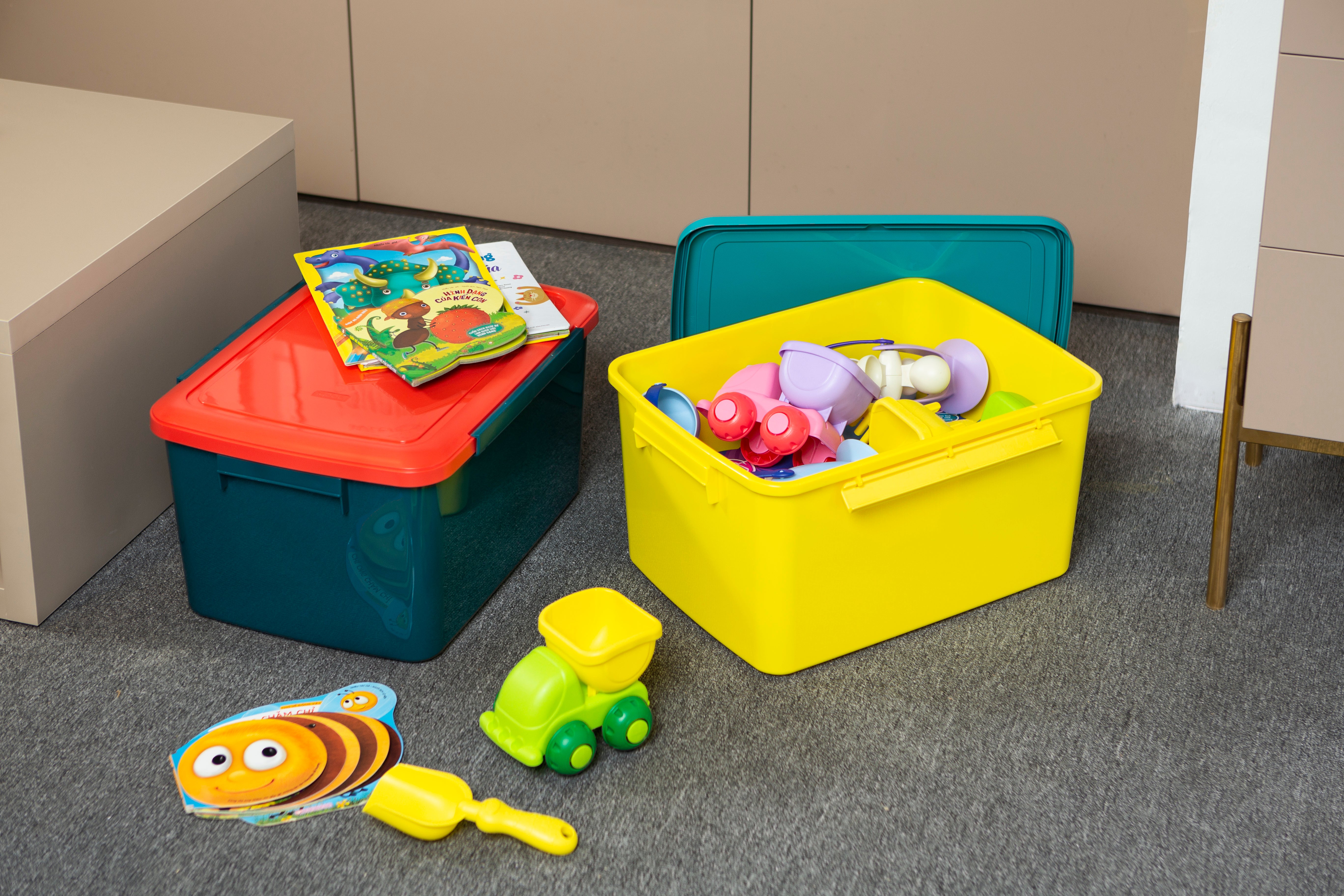 This bright colored storage has a large capacity to hold multiple baby items and toys, a perfect companion to decorate baby's room and it is capable of stacking multiple floors to save spaces.