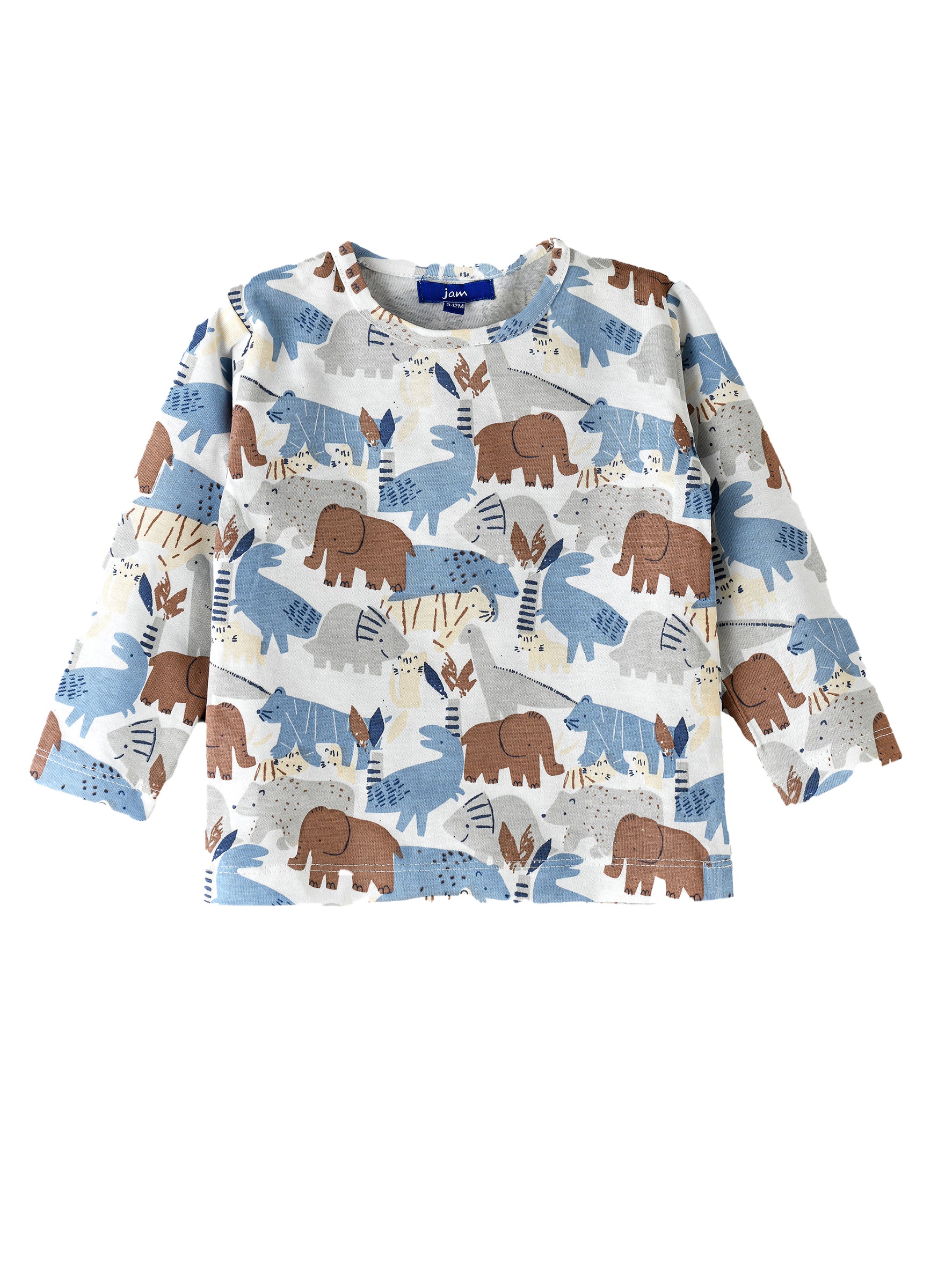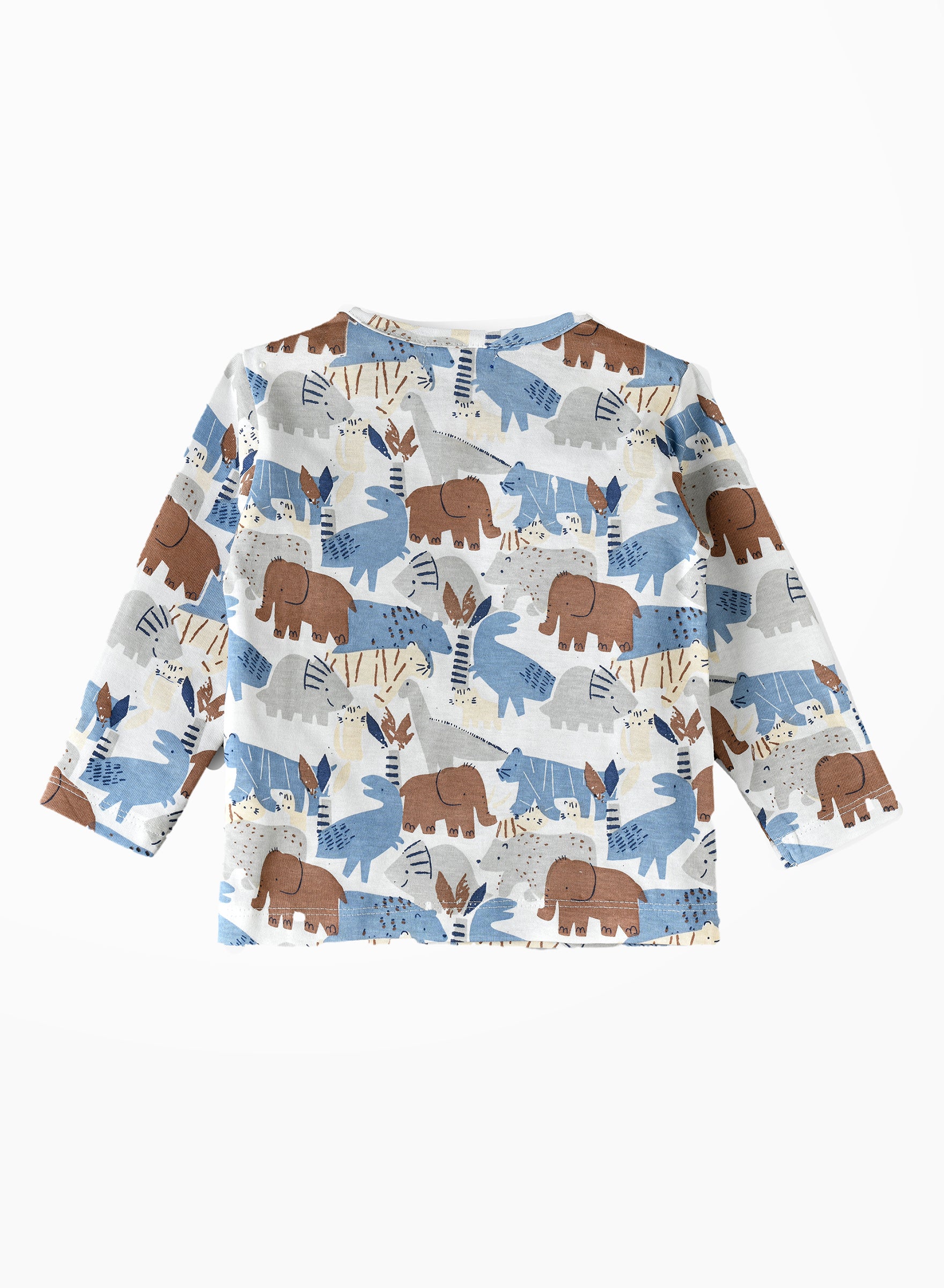 This Boys Animal Print Long-Sleeve Top is designed to bring fun and comfort to his everyday wardrobe. The playful animal print with elephants, tigers, and other jungle creatures makes this top a favorite for kids who love animals. Made from 100% soft cotton, it ensures comfort throughout the day. The long sleeves provide extra coverage for cooler days, while the crew neckline gives a classic, easygoing look. Whether paired with jeans or shorts, this top is perfect for playdates, casual outings, or school.