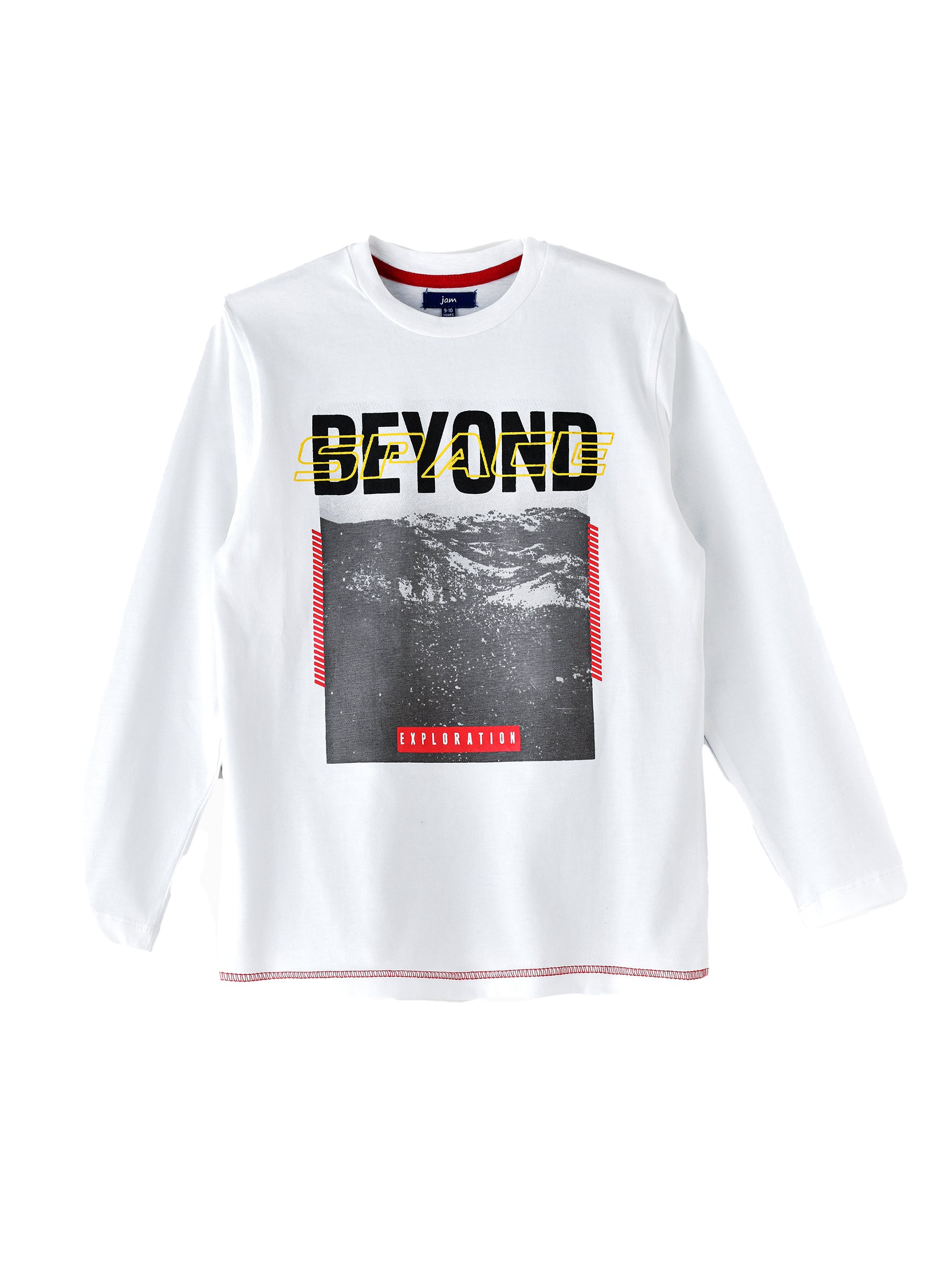 The Boys' 'Beyond Space' Graphic Long-Sleeve T-Shirt in white brings a bold, futuristic touch to his wardrobe. The eye-catching 'Beyond Space' graphic adds a trendy and adventurous element, perfect for space-loving boys. Crafted from soft, breathable cotton, this long-sleeve tee ensures all-day comfort whether he's at school, playing, or relaxing. The crew neckline and long sleeves make it a versatile choice for layering during cooler weather. An ideal choice for casual wear, this t-shirt is a must-have for his everyday wardrobe.