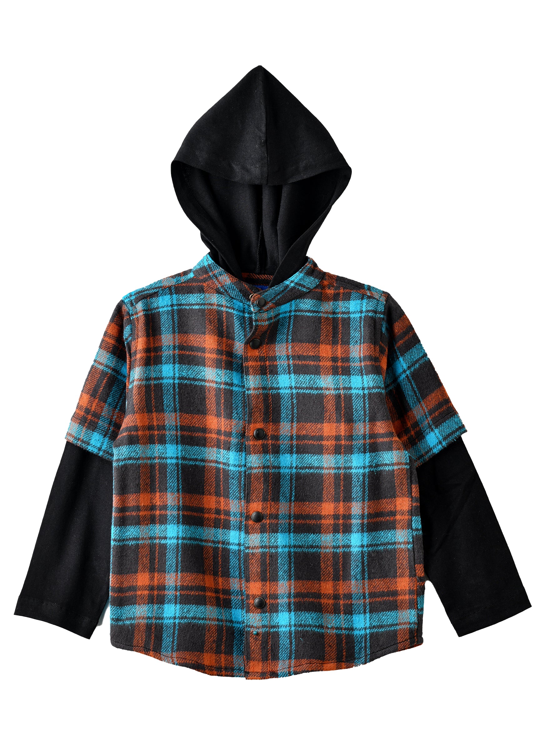 Plaid shirt with hood for boys, featuring long sleeves and a button-down closure, combining style and comfort. Ideal for layering or wearing solo, this versatile shirt is perfect for casual outings, school days, or weekend adventures.
