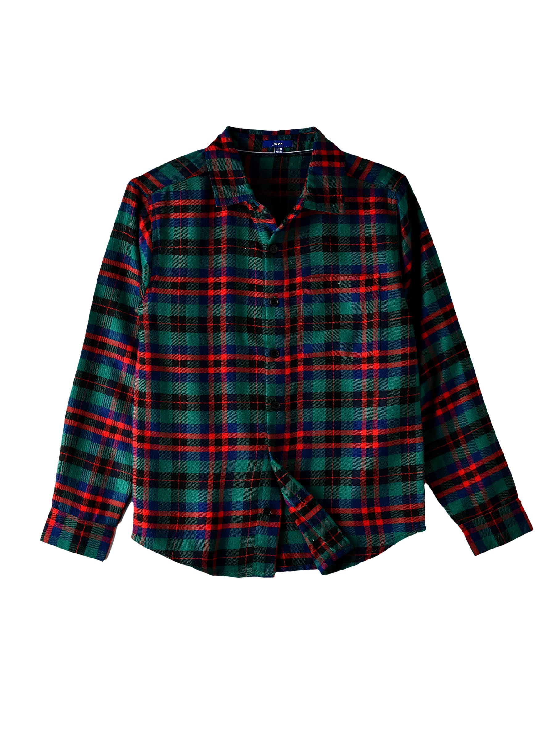 The Boys' Green and Red Plaid Shirt adds a touch of classic style to any boy’s wardrobe. Crafted from soft, breathable cotton, this long-sleeve shirt features a timeless plaid design in green and red, perfect for a range of occasions. Whether it's a casual day out or a semi-formal event, this shirt is designed to provide both comfort and a polished look. The button-up front and chest pocket add a functional and stylish touch, making this shirt a versatile choice for your boy's everyday and special occasion wear.