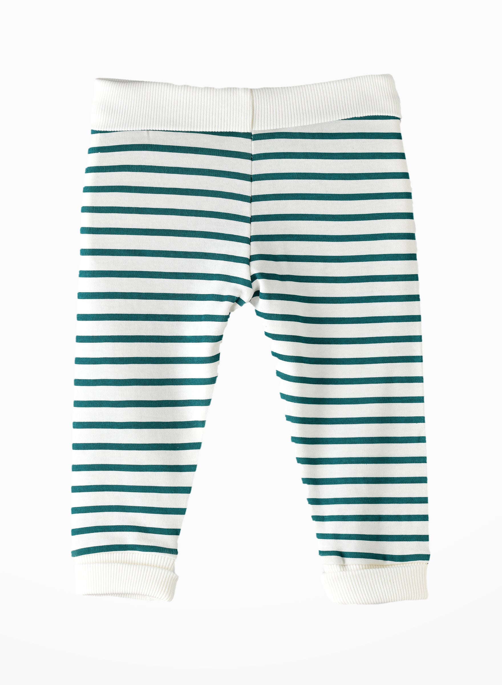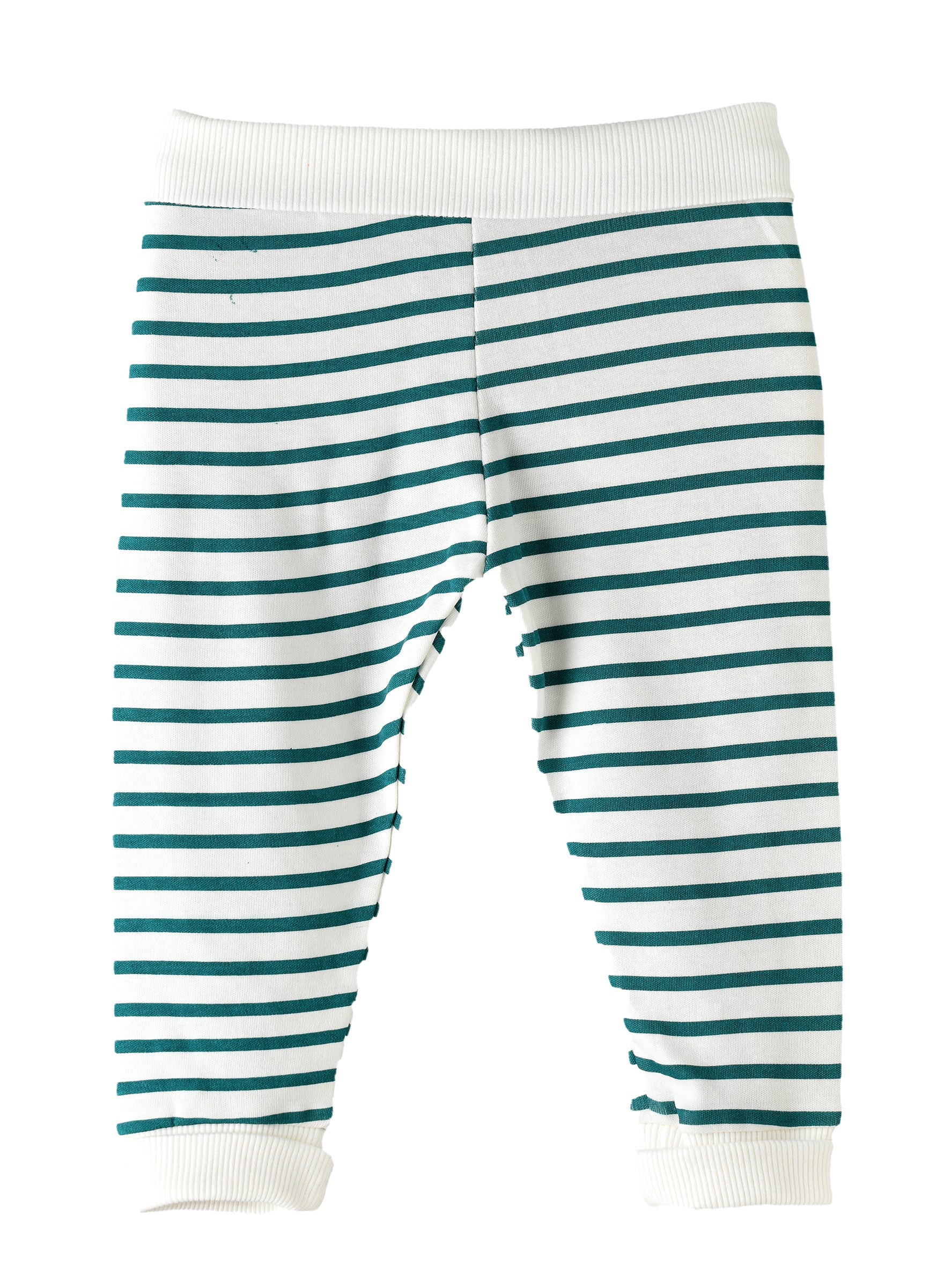 These Boys' Striped Elastic Waist Joggers in white and green bring a stylish and classic look to his wardrobe. Featuring a fresh striped design, these joggers are perfect for casual outings or playtime. The soft cotton fabric with a hint of elastane offers comfort and flexibility, making them perfect for active days. The elastic waistband ensures a snug fit, while ribbed cuffs at the hem help retain warmth and keep the joggers in place. Whether paired with a casual t-shirt or hoodie, these joggers are ideal for versatile everyday wear.