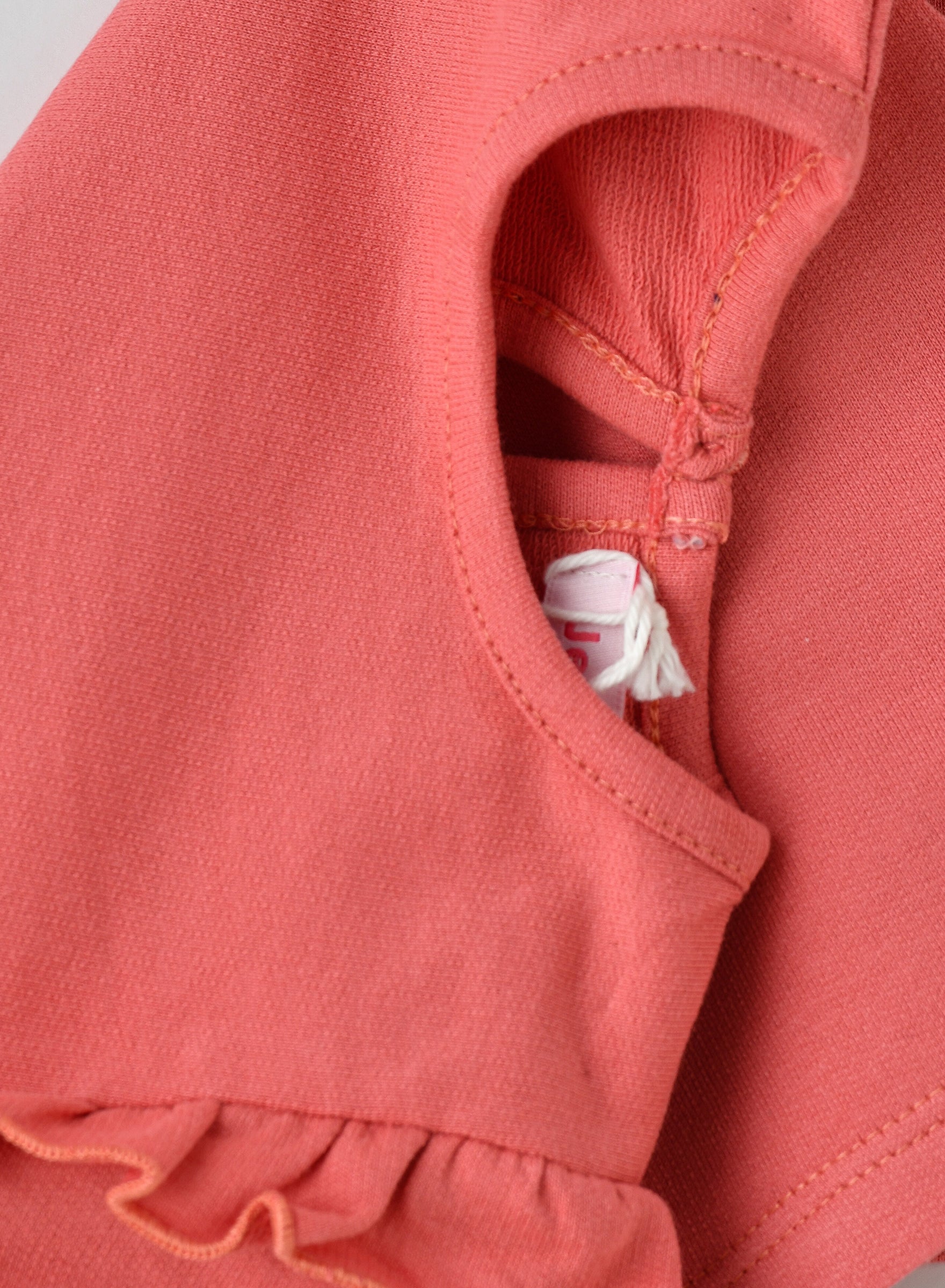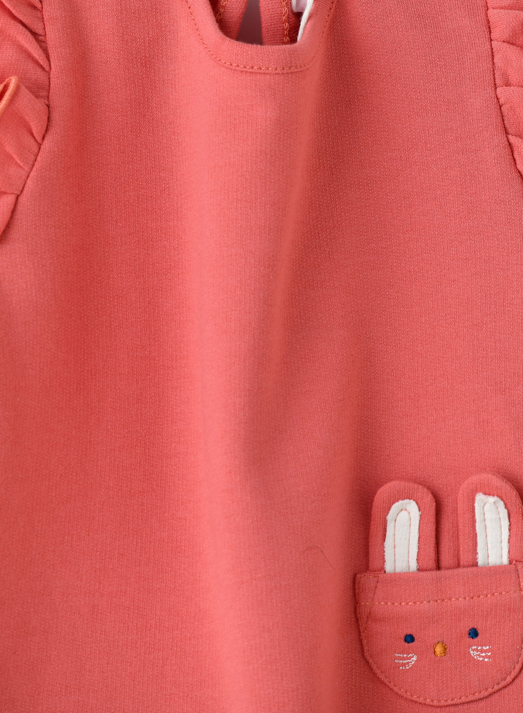 - Adorable baby coral top with a bunny pocket and ruffle detail. Crafted from soft cotton for a comfortable and cozy fit.