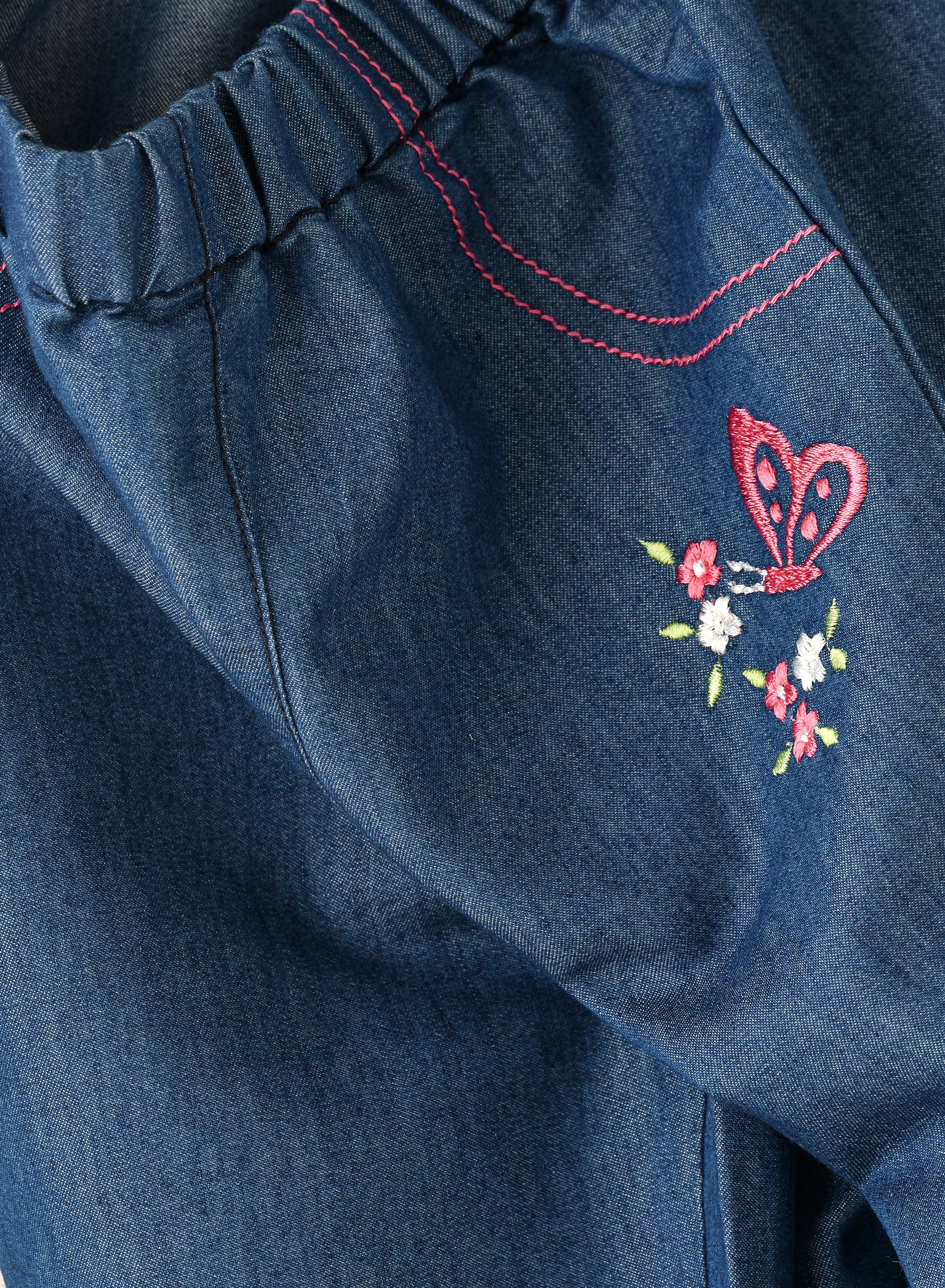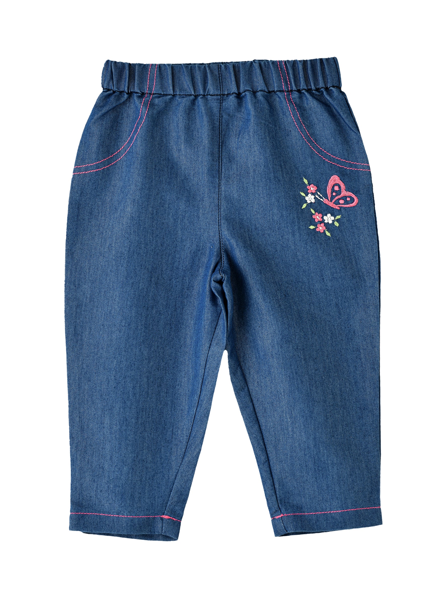 These denim pants for girls feature a cute butterfly embroidery and an elastic waistband for a comfortable fit. Ideal for casual wear, these pants provide style and comfort all day long.