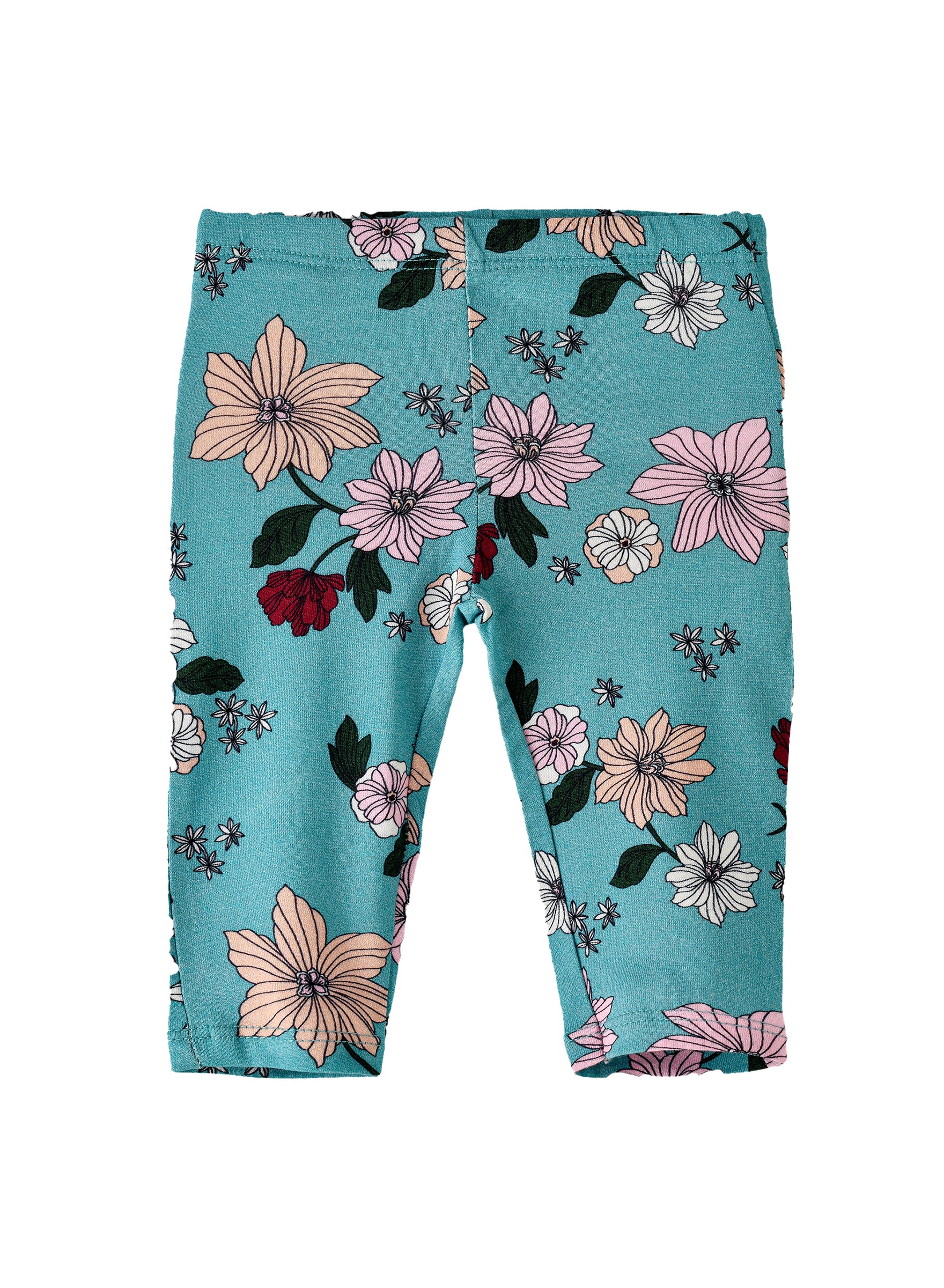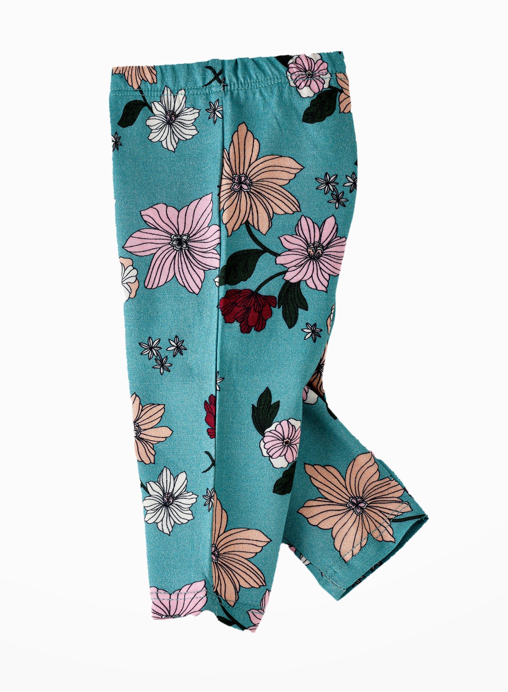 These Girls' Floral Print Elastic Waist Leggings in a beautiful teal color are perfect for everyday wear.