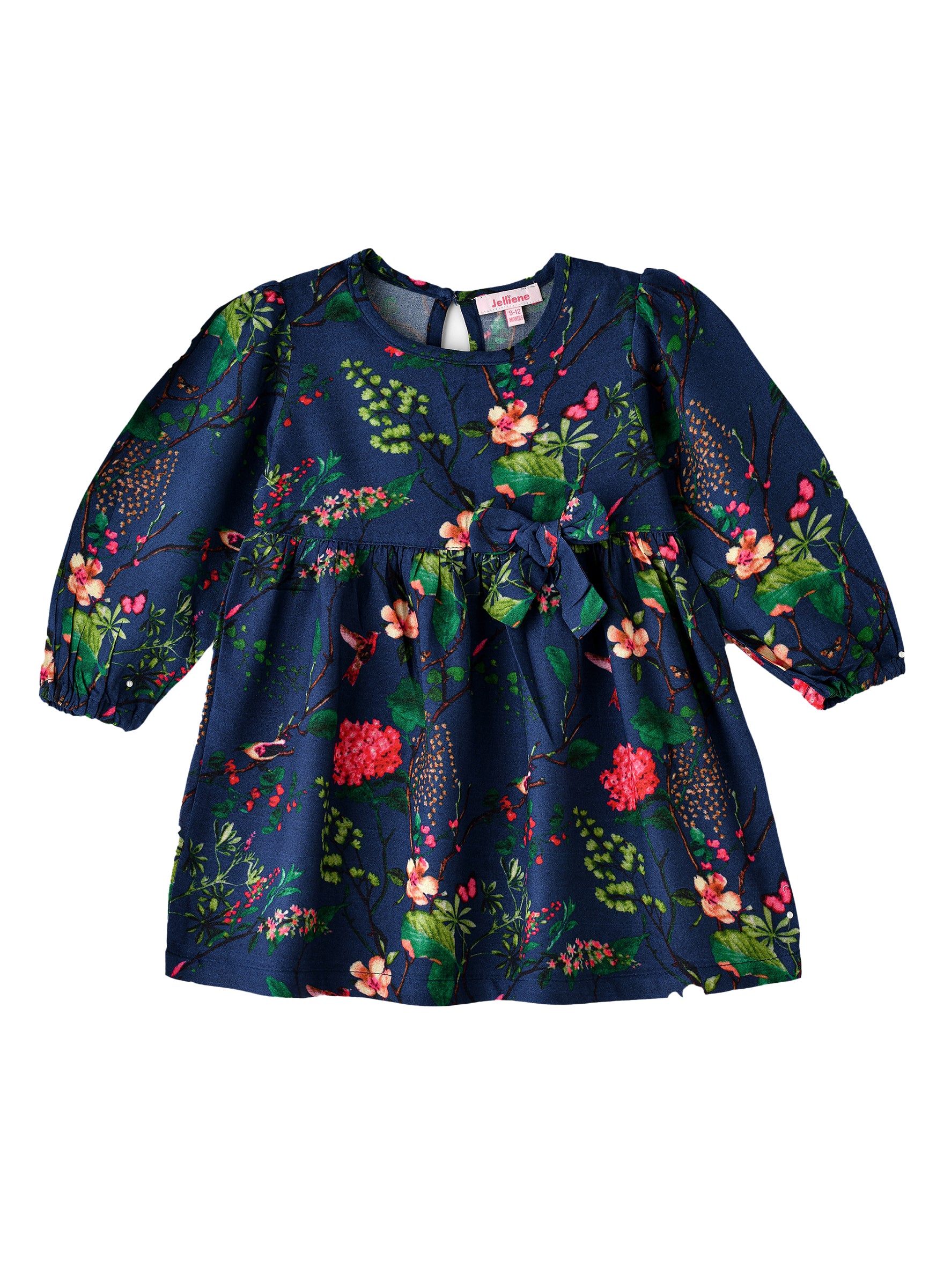 Made from soft and lightweight viscose fabric, this dress features a beautiful all-over floral print that adds a whimsical, nature-inspired vibe. The bow detail at the waist gives it a playful and stylish touch, perfect for casual outings or special occasions. The long sleeves provide warmth for cooler days, while the back button closure ensures easy dressing. This dress is a perfect addition to her collection, combining practicality and fashion effortlessly.