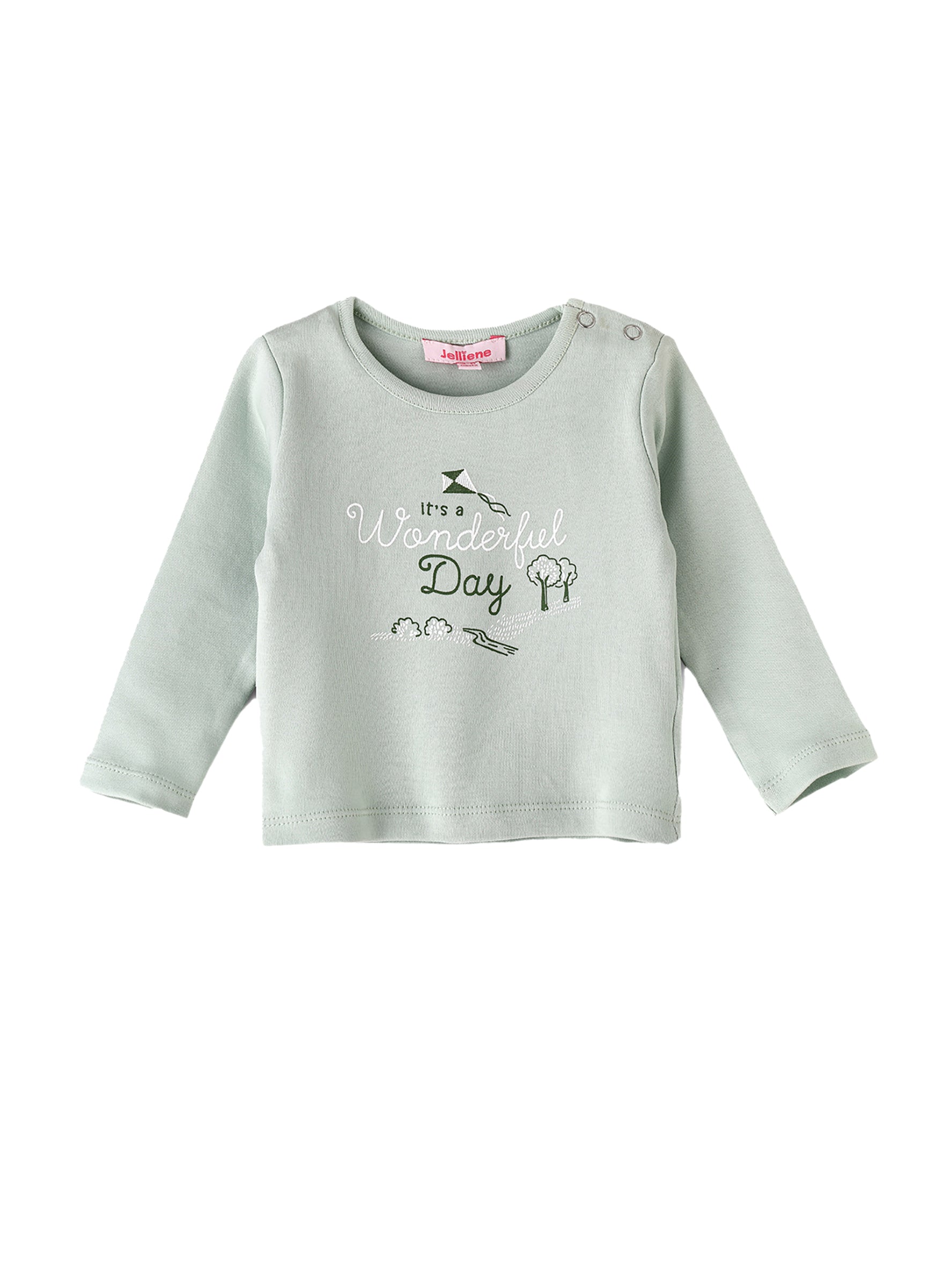 This adorable mint green sweatshirt for girls features a 'It's a Wonderful Day' graphic print. Made with soft fabric, it's perfect for casual wear on cooler days.