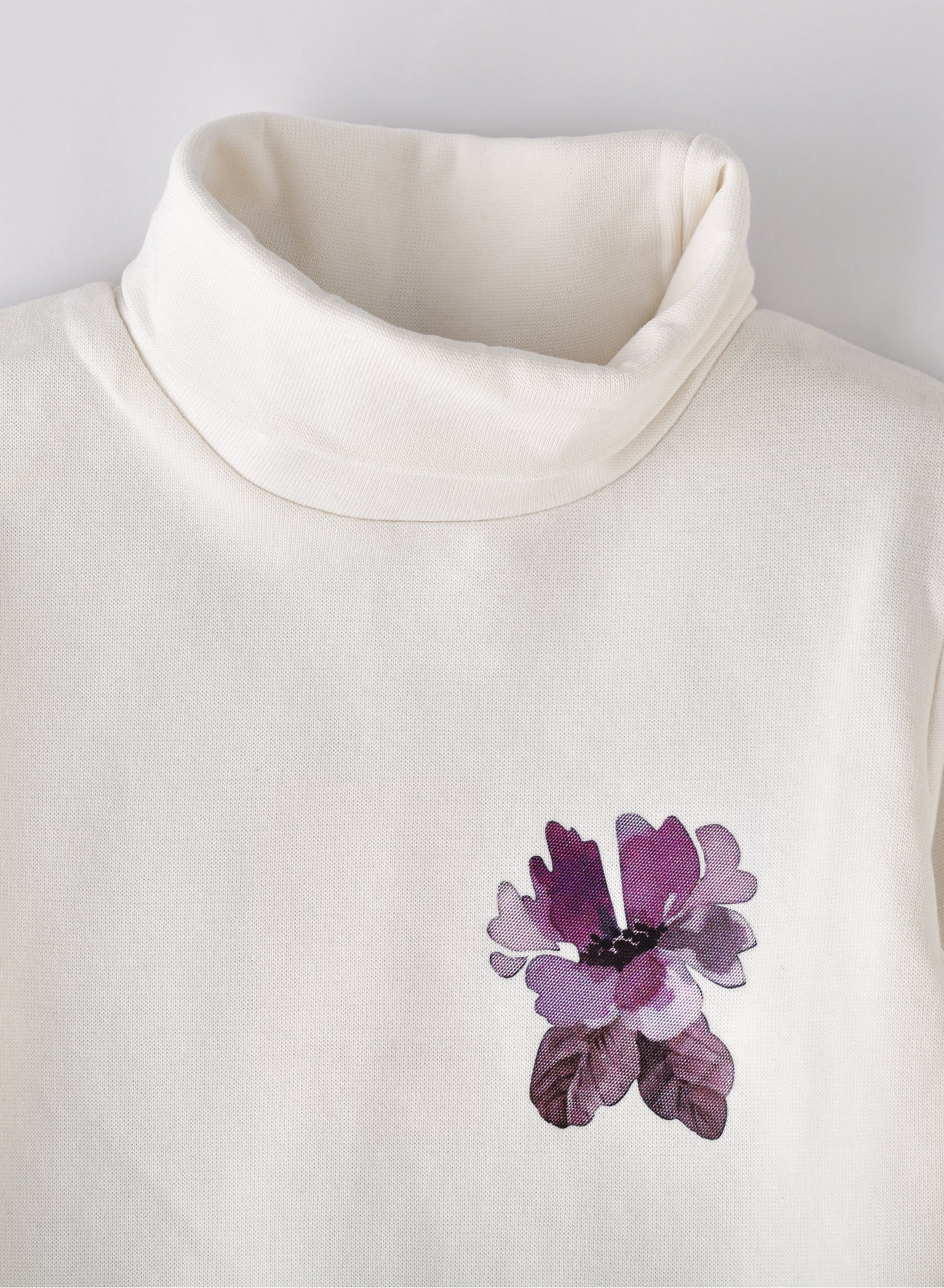 Jelliene's Classic turtleneck for girls with a subtle floral print. A perfect choice for your girl's everyday essentials for winter days. The fashionable sweatshirt offers a stylish combination, ensuring your child looks picture-perfect and effortlessly ready-to-go chic look during any activity and shines with confidence.