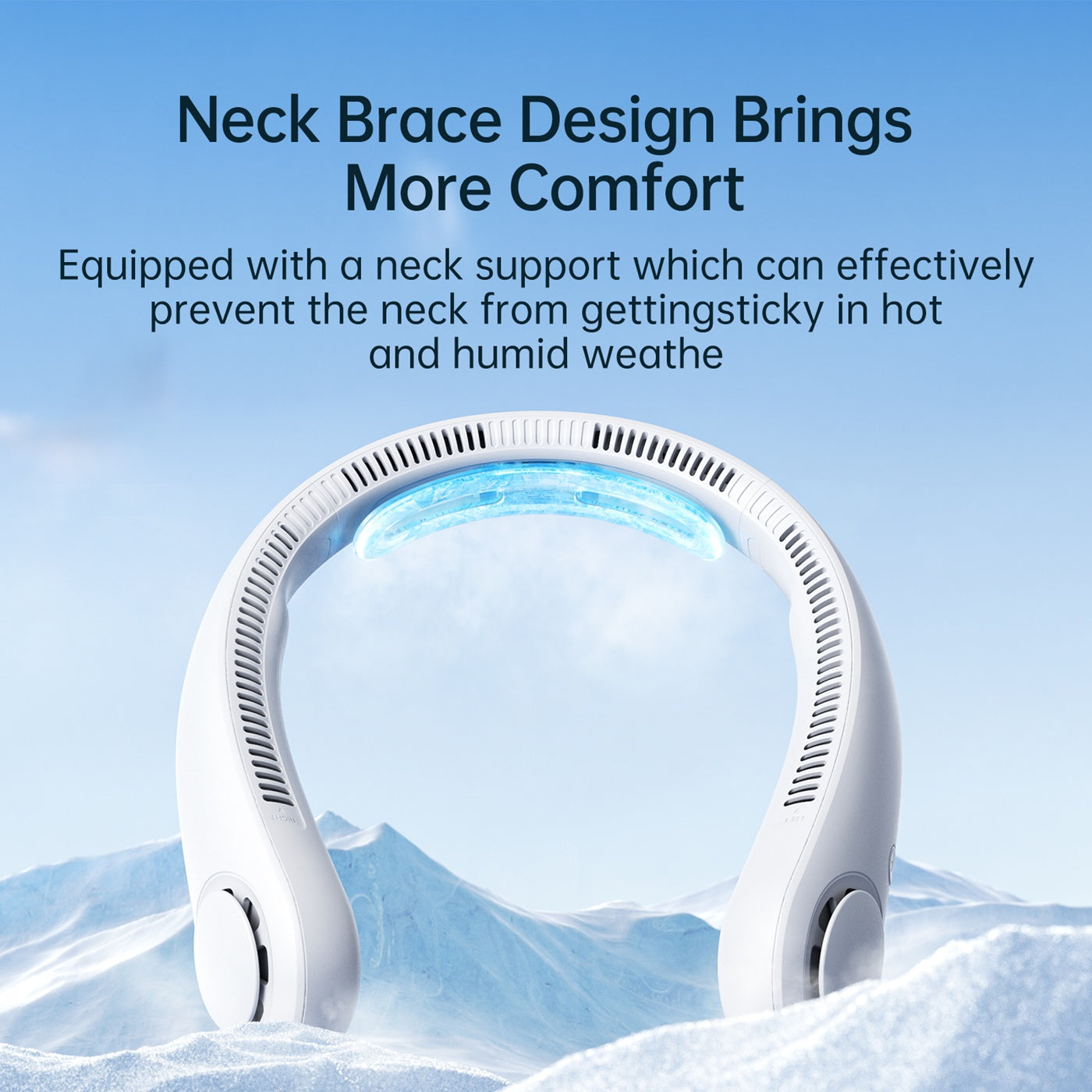 Neck fans are portable and rechargeable with their compact design, this portable neck fan, only 9.87 ounces, and 7.87 x 2.36 x 8.11 inches, won't make you feel tired even if you can take wearable fans anywhere all day. Simply wear personal fans for your neck and enjoy instant cooling relief on the go. Whether you're at work, office, church, home, school, kitchen, gym, outdoor, indoor, sports, hiking, camping, mountain climbing, watching sports games, etc., this hands-free bladeless fan is the perfect companion to keep you cool and comfortable.