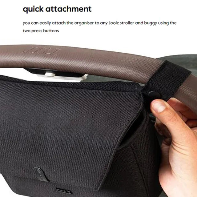 - Quick attachment: You can easily attach the organizer to any Joolz pushchair and buggy using the two press buttons.
