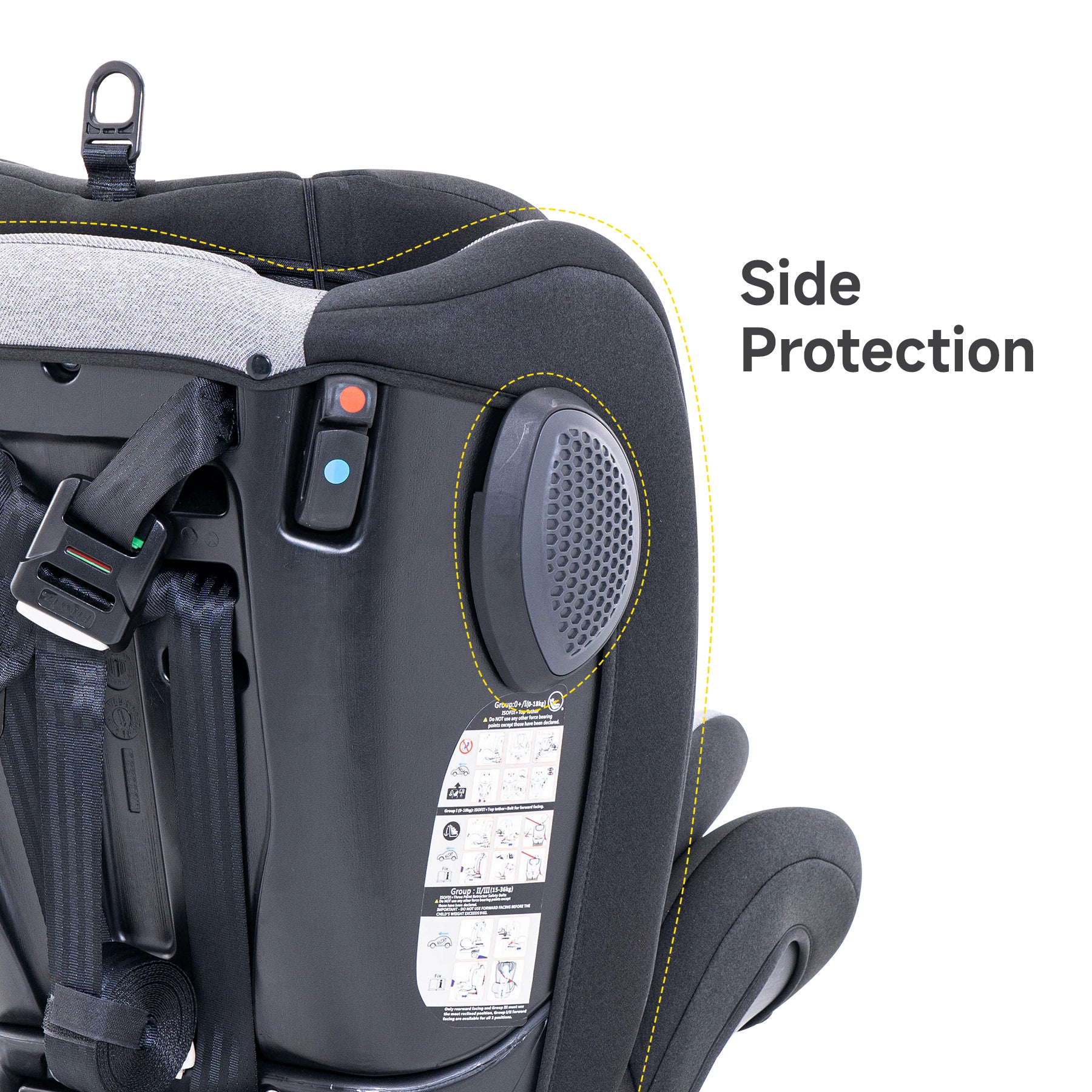 - Enhanced Safety: Tested and certified through the stringent ECE R44 standard, this car seat offers peace of mind to parents regarding its safety Features and performance. The inclusion of triple-layer headrest protection further enhances safety by reducing the impact from side collisions.