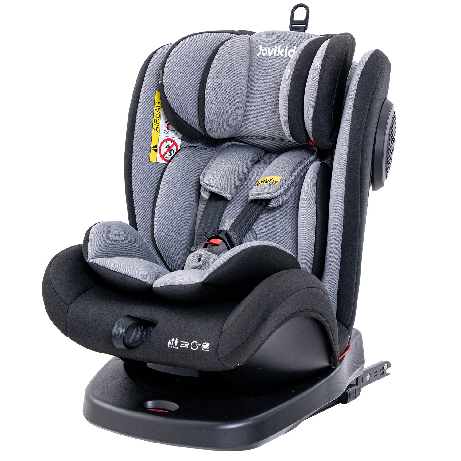 Jovikids Angel Safety Baby Car Seat with Isofix and Top Tether, 360 Degree Swivel Child Seat, Rotating Carseat for Group 0/1/2/3, 0-12 Years Old, ECE R44/04, Black