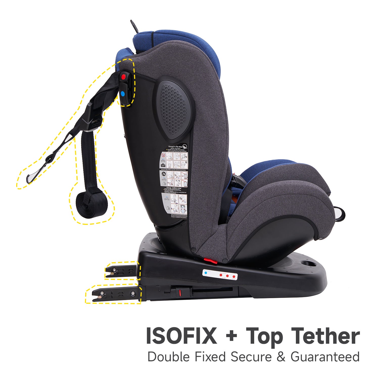 Jovikids Angel Safety Baby Car Seat with Isofix and Top Tether, 360 Degree Swivel Child Seat, Rotating Carseat for Group 0/1/2/3, 0-12 Years Old, ECE R44/04, Blue