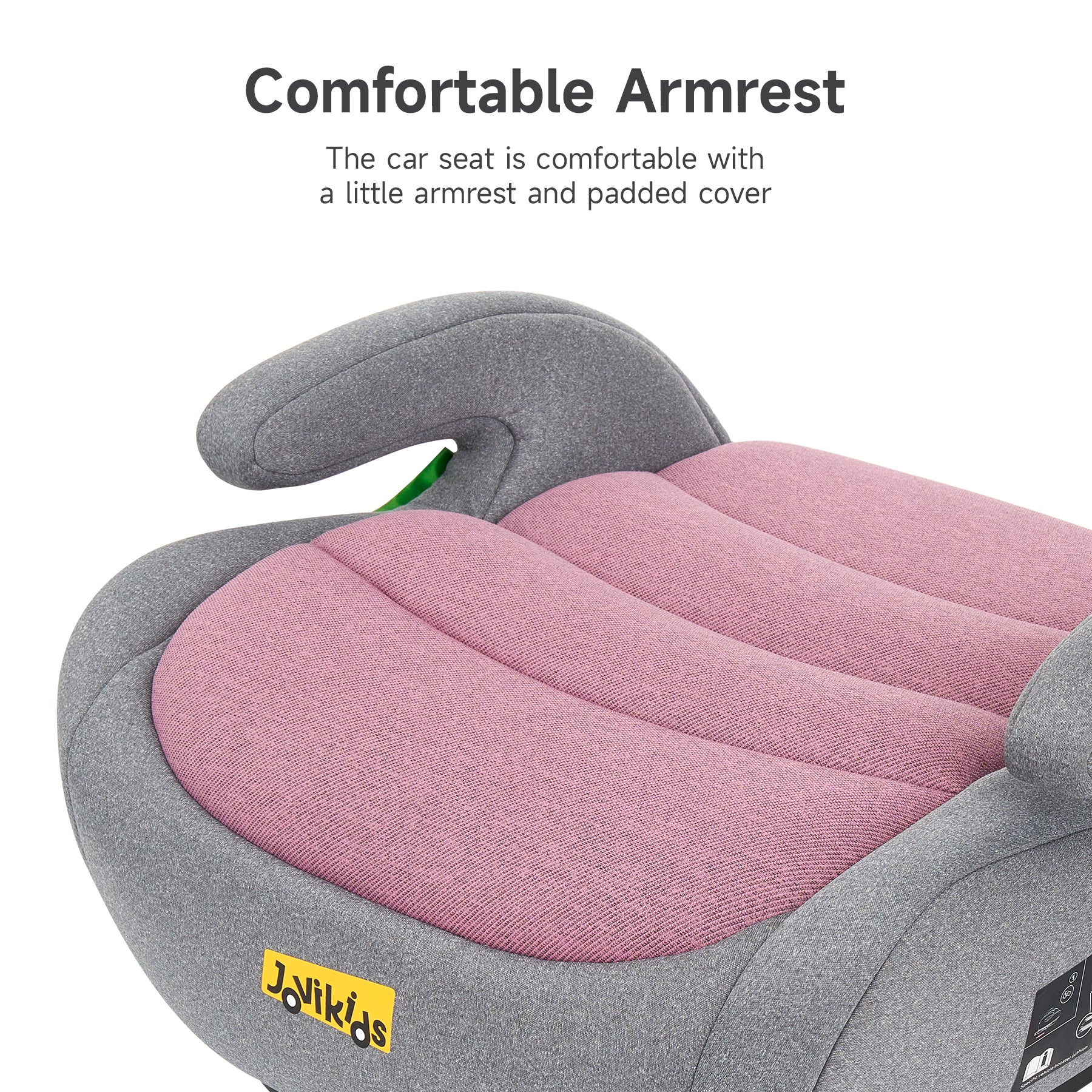 Jovikids Ohho+ I-Size Booster Seat for Car with ISOFIX, 125-150cm (Group 2/3, 6-12 Years), Portable Car Seats for Kids, Comfortable, Compact, Convenient for Everyday Use, Great for Travel, With Retractable Cup Holder, ECE R129, Pink