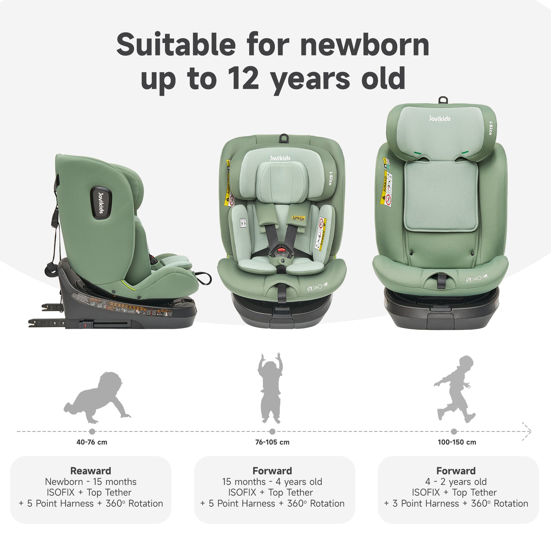 Jovikids Ranger TT ISOFIX Car Seat 360° for 40-150cm Baby Childs, Rotating Car Seat for Newborn 0-12 years, ECE R129/E4 I-size, Fixations ISOFIX, Top Tether - Black