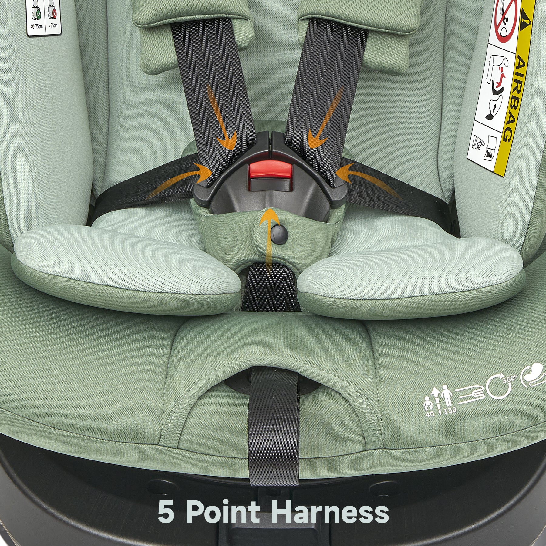 - 360 degree Swivels: Easily rotate the seat for hassle-free access, making it convenient to get your child in and out of the car.