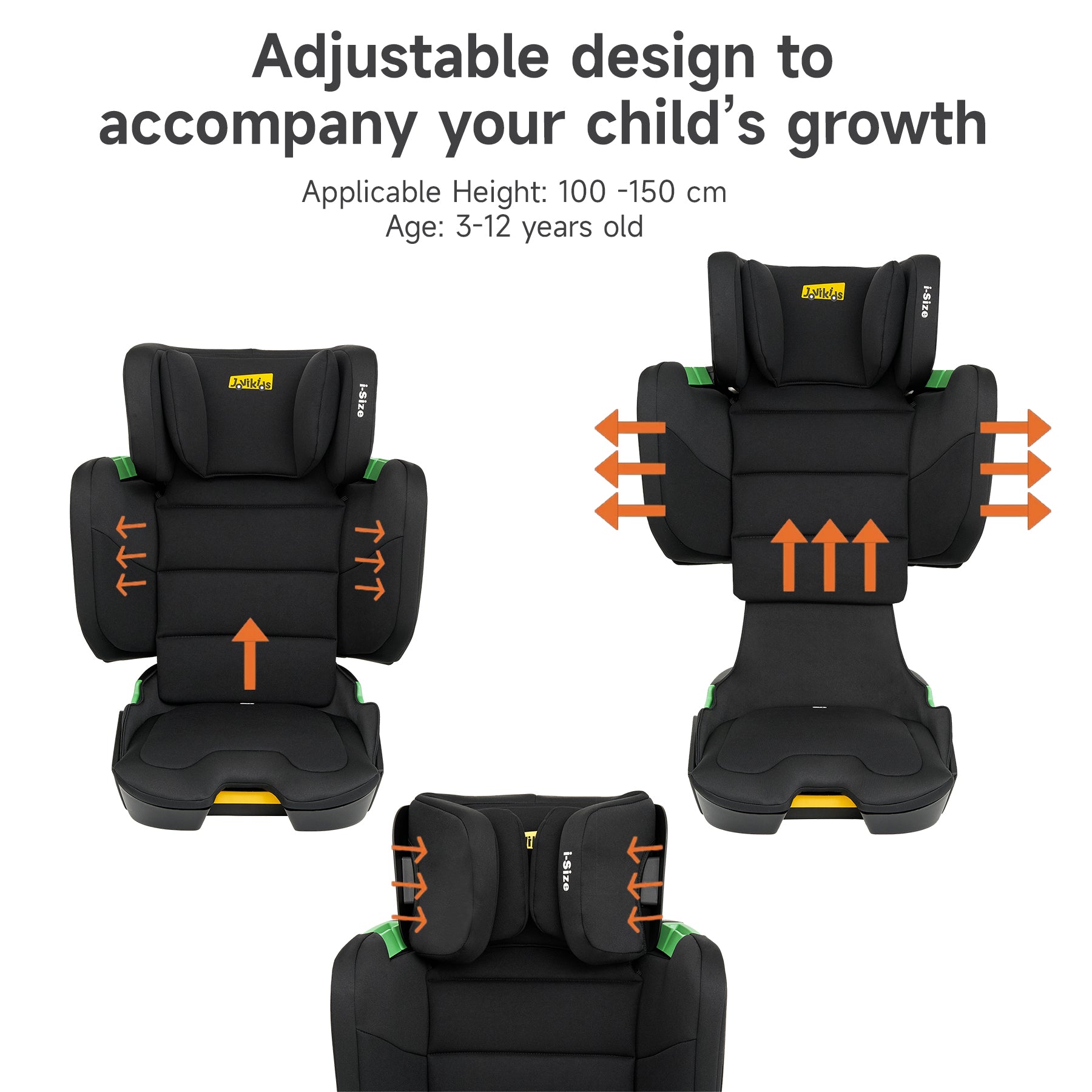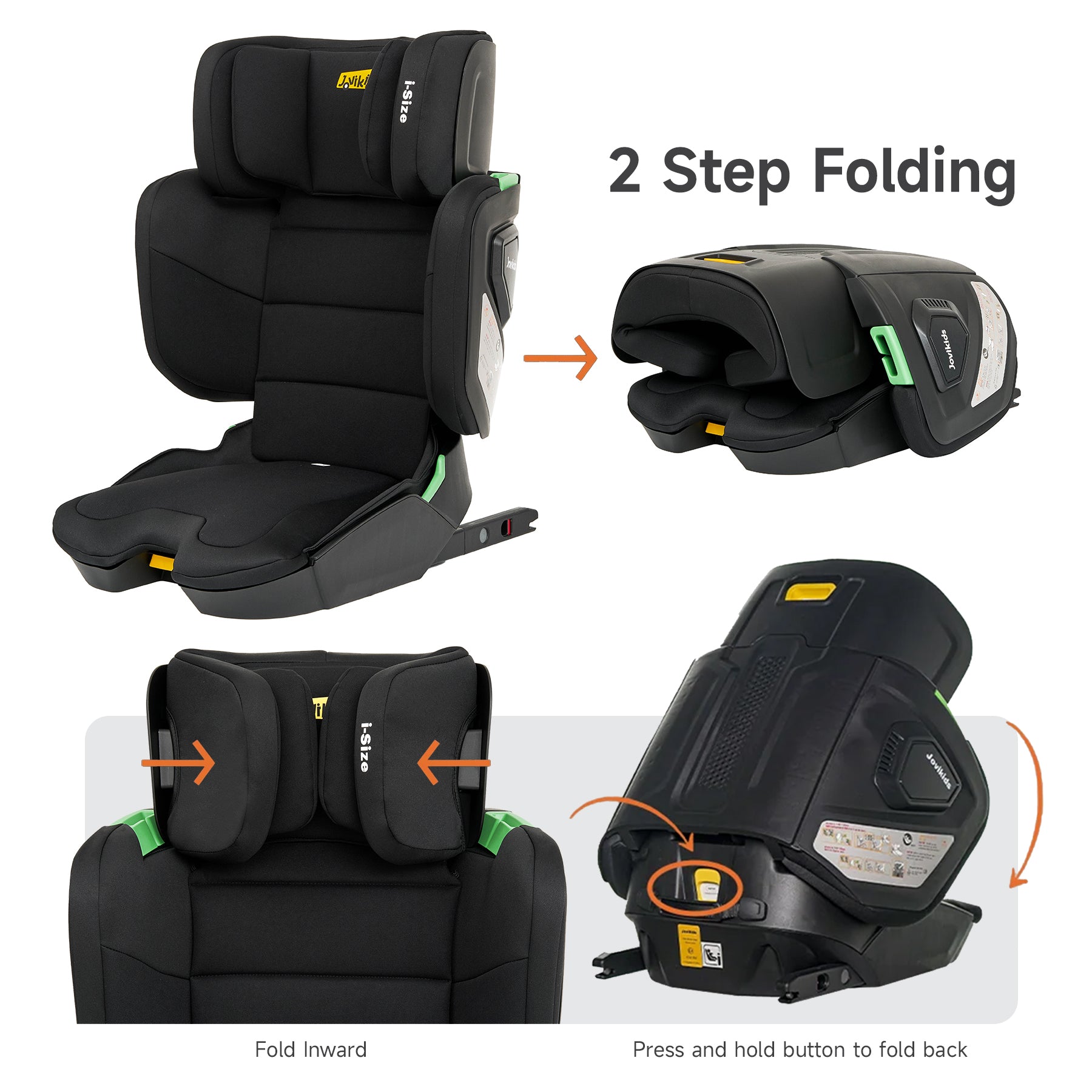 Jovikids Rober i-Size Booster Seat with ISOFIX, Suitable for Kids 100-150cm (Approx. 3 to 12 Years), Adjustbale Height and Width, Cabin Size Portable Toddler Car Seat for Travel, Compact & Folding, ECE R129, Black