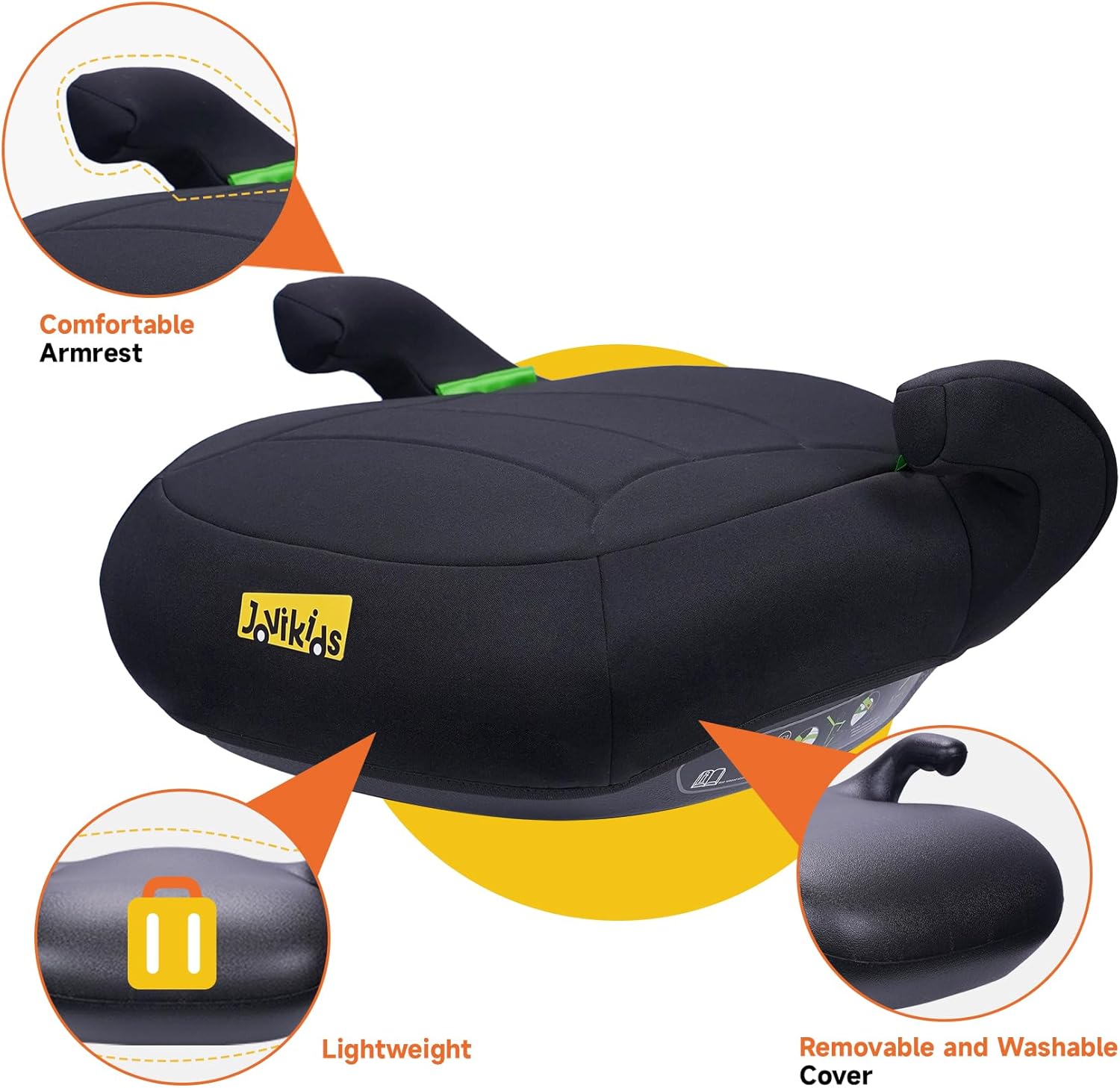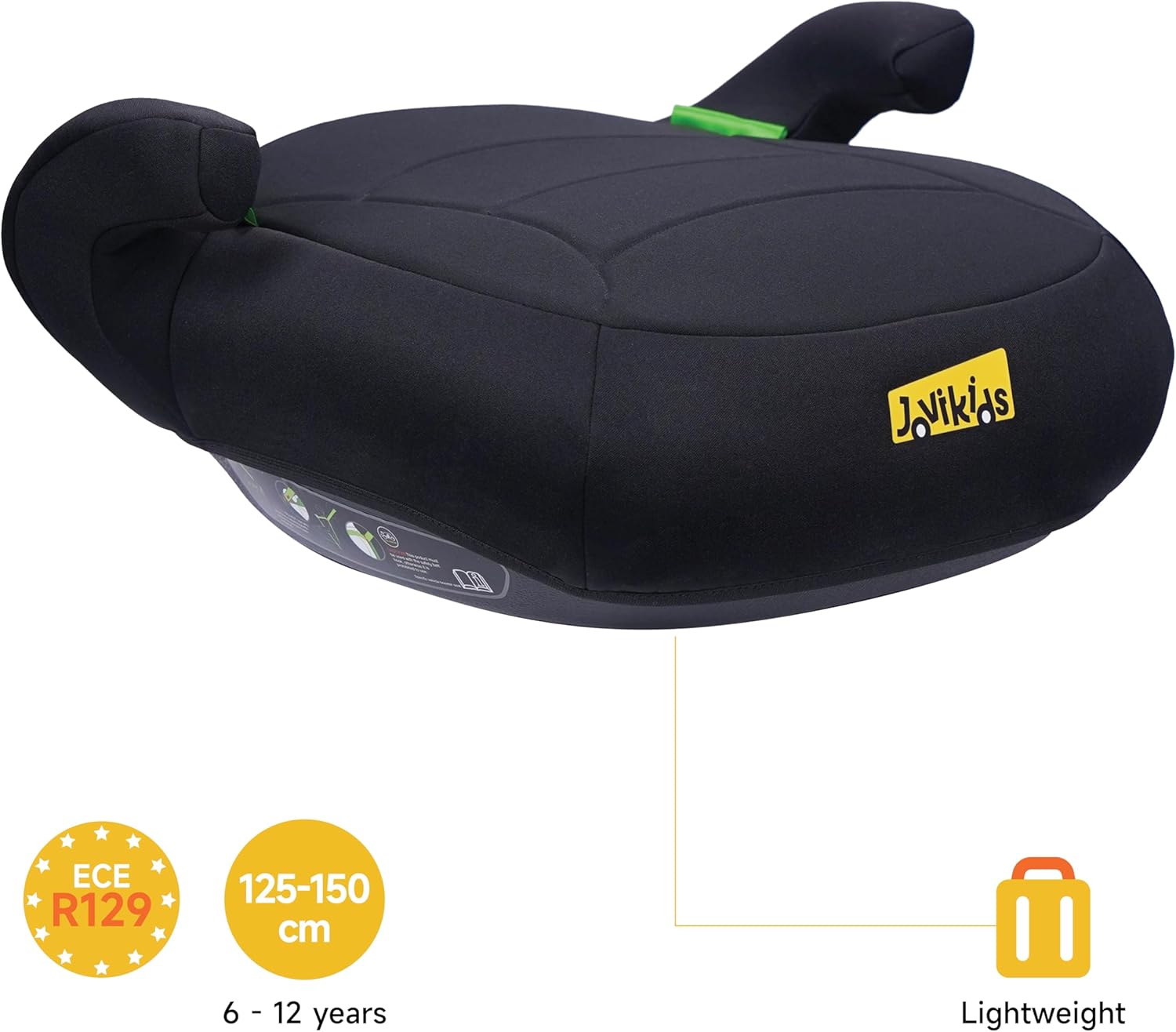 Jovikids Yoho I-Size Booster Seat (Group 2/3, 6-12 Years), Portable Car Seats for Kids, Comfortable, Compact, Convenient for Everyday Use and travel, ECE R129, Black