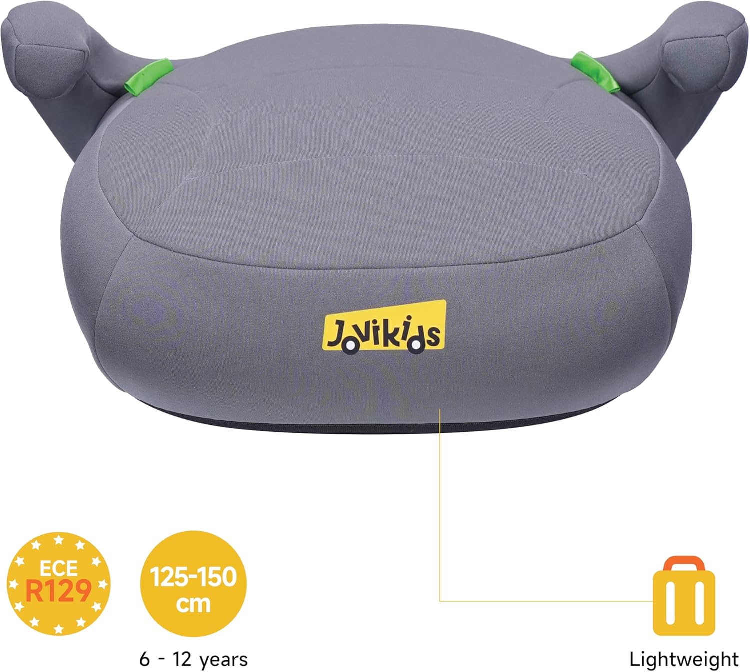 Jovikids Yoho I-Size Booster Seat (Group 2/3, 6-12 Years), Portable Car Seats for Kids, Comfortable, Compact, Convenient for Everyday Use and travel, ECE R129, Grey