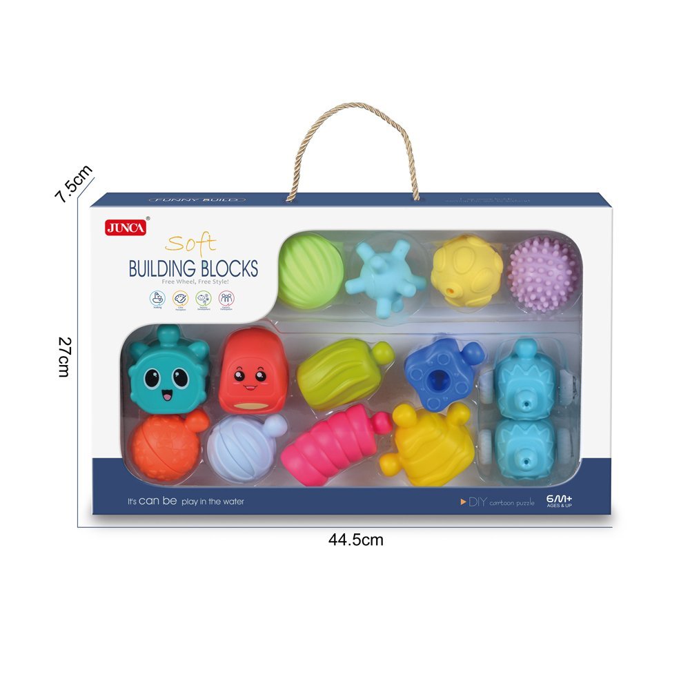 - Fun Squeeze and Bath Toys: Soft building blocks are easy to squeeze and make squeaking noises, attracting babies' attention and helping with hearing development?let baby take a bath in happy atmosphere and fall in love with it.