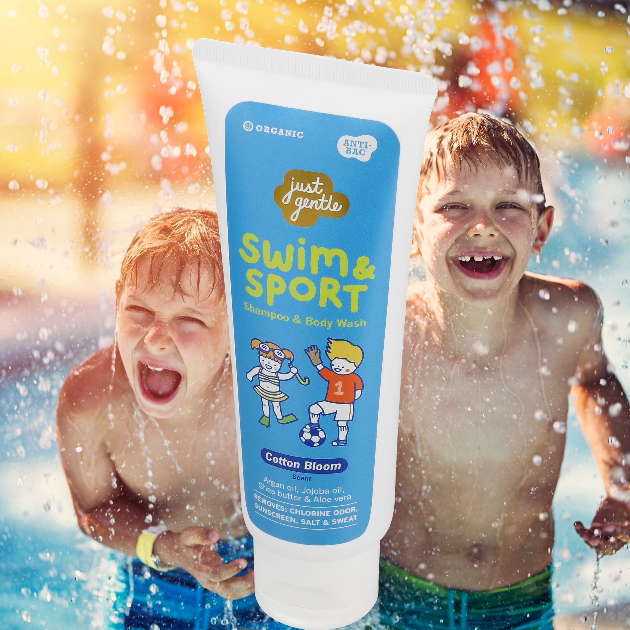 This product is a head-to-toe solution, perfect for active kids who love sports and swimming. Our unique formula helps to wash away chlorine, salt, minerals, and sunscreen for kids who love to swim. It also washes away sweat, odor, and bacteria for kids who love sports. Our natural cleaning formula is derived from shea butter, which washes away chemicals such as chlorine and acts as an antioxidant. Our luscious formula contains argan oil, jojoba oil, shea butter, and aloe vera that will leave hair and skin clean and nourished.