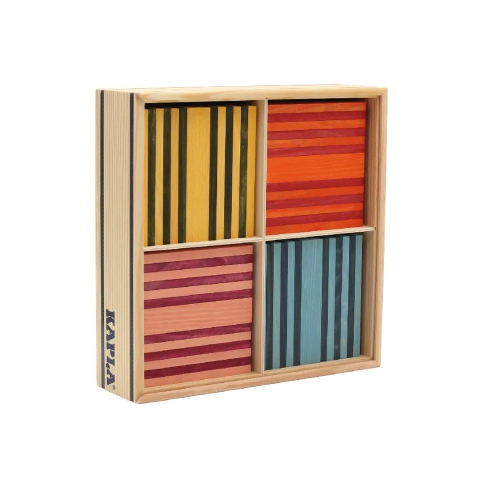 This 100 piece wooden block set includes enough KAPLA blocks to create a colourful range of buildings, monuments and geometric forms. With no glue or connectors required...KAPLA precision milled wooden planks can simply be stacked a myriad of different ways to create pretty much anythjing your imagination can come up with. Buildings, monuments, animals or geometric shapes, you are only limited by your imagination!