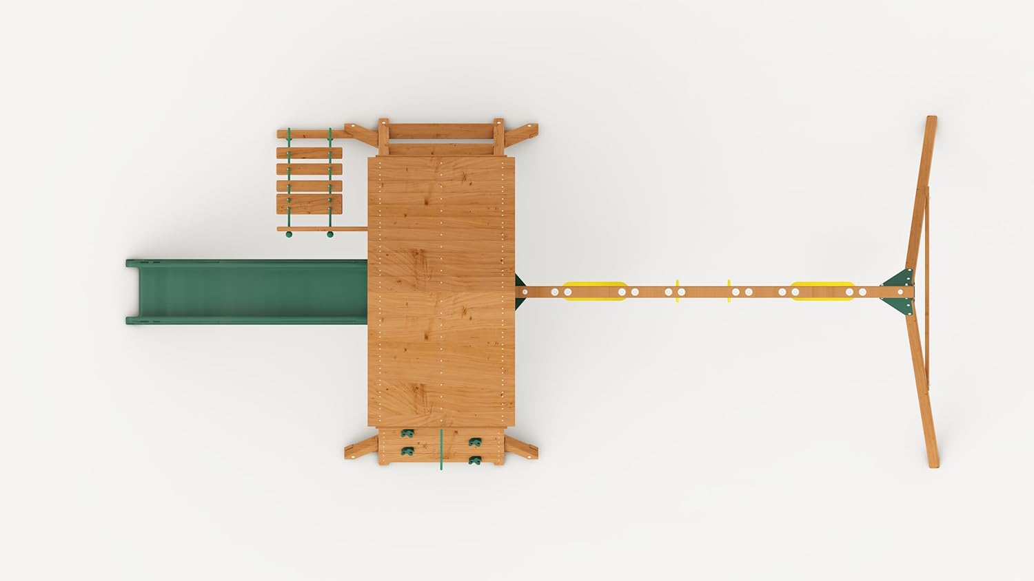 Compact in size but big on adventure, the Hilltop Heights playset is designed for lasting fun and safety. Built from heavy-duty lumber, this sturdy structure offers long-lasting durability, making it perfect for active kids and peace-of-mind parents. Its compact footprint fits well in smaller outdoor spaces while still providing essential play elements — from climbing and sliding to imaginative play. A perfect blend of strength, function, and fun.