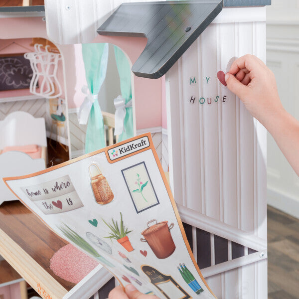 You can even store doll clothes in the closet that comes with three coat hangers! Made to love for years to come, the Celeste Mansion Dollhouse will breathe life into your child's games of pretend and provide hours of playful adventures