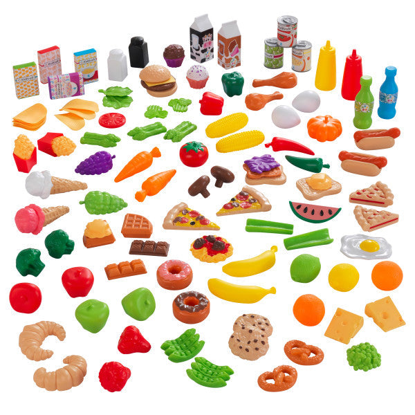 - 115 pieces, including fruit, vegetables, snacks, pizza, waffles and more