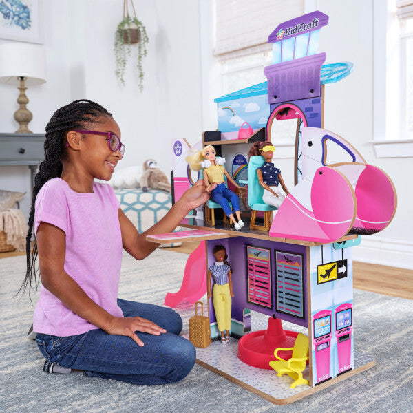 When you land, don't forget to pick up your luggage from the spinning baggage carousel. Then, check the board for your next connection! Bon voyage! Check out other travel with KidKraft's Luxe Life 2-in-1 Cruise Ship & Island play set too!