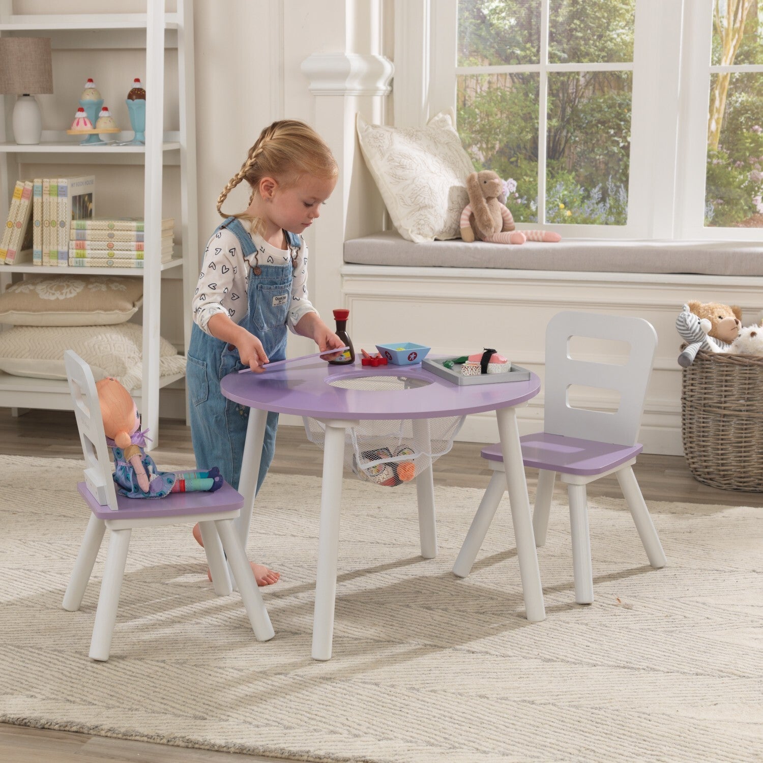 Kidkraft Round Storage Table & 2 Chair Set - Lavender