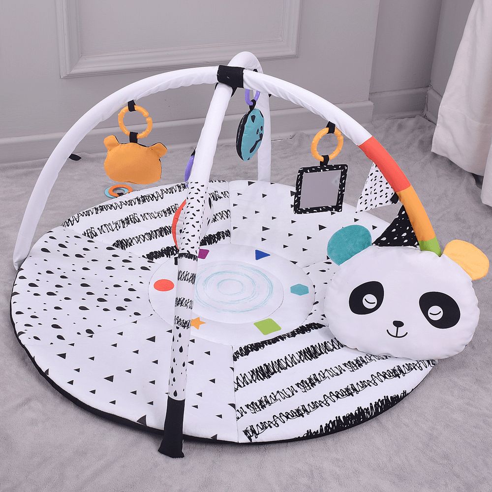 Support your baby’s development with this colorful Baby Activity Play Gym Mat. Designed with soft padding and sensory hanging toys, it encourages reaching, grasping, and visual exploration. The included pillow adds comfort during tummy time, making it perfect for newborns and infants.